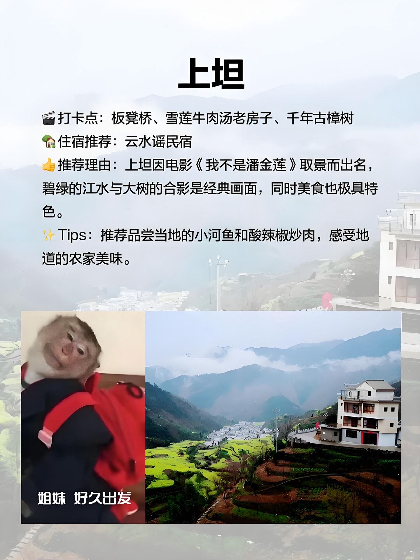 村口的板凳桥和千年古樟树都是打卡的好地方。