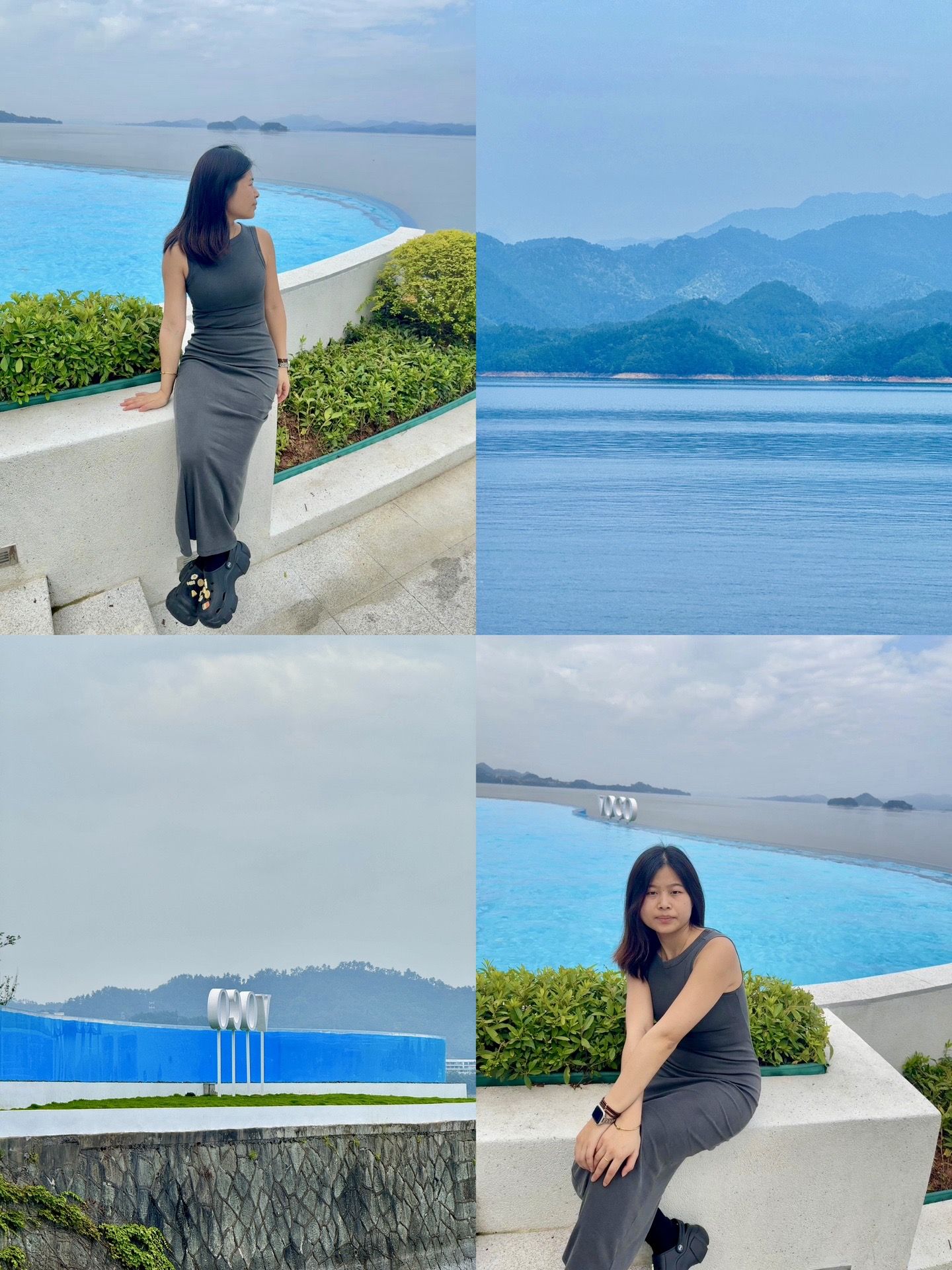 夏日玩水重头戏当然是这重建好的无边际泳池,酒店里景色最好的一段,千岛湖的风景如画卷一般在眼前打卡。