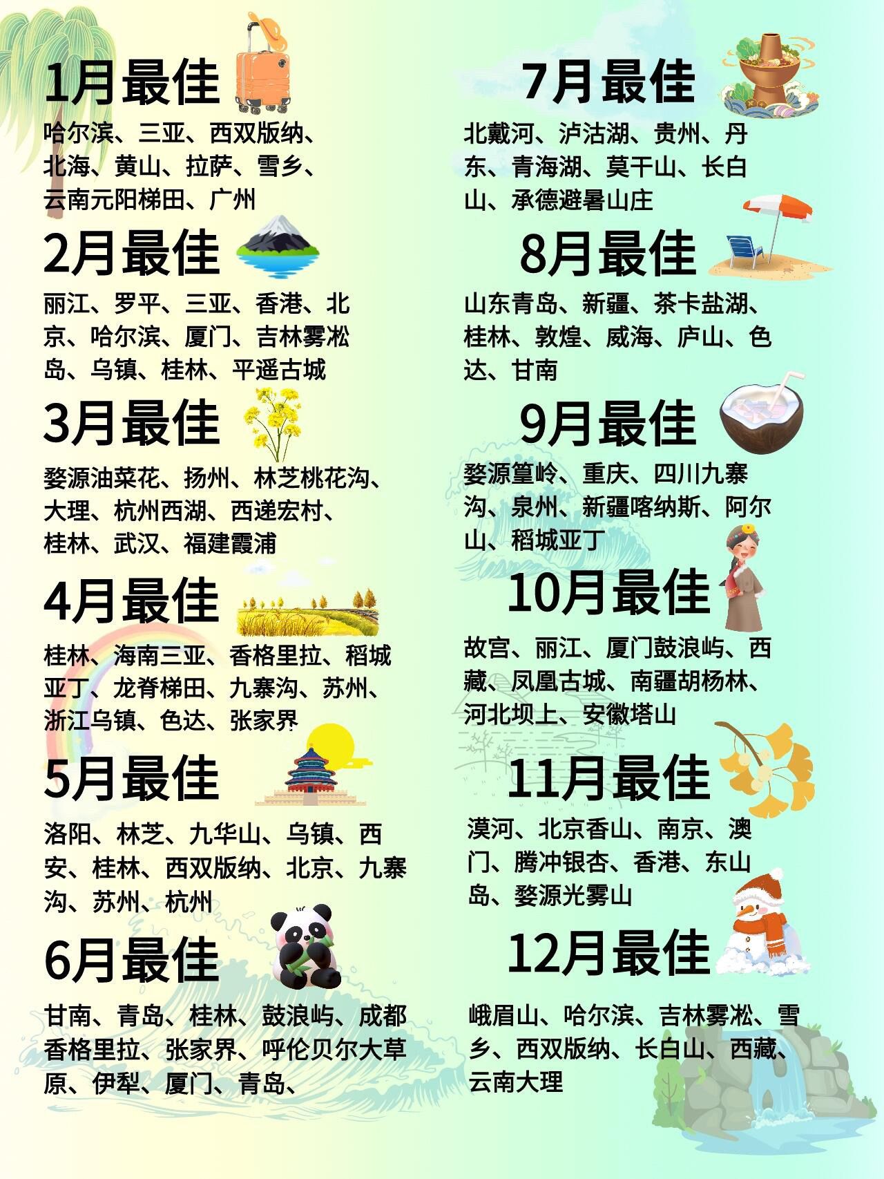 超全啦,2024每个月适合去旅游的目的地|||毕业旅行不知道去哪玩?暑假假期不知道去哪玩?别慌!今天给大家整理了一份2024超全的旅游计划安排,各个月份对应适合的旅行地,提前计划开启美妙的旅程吧~