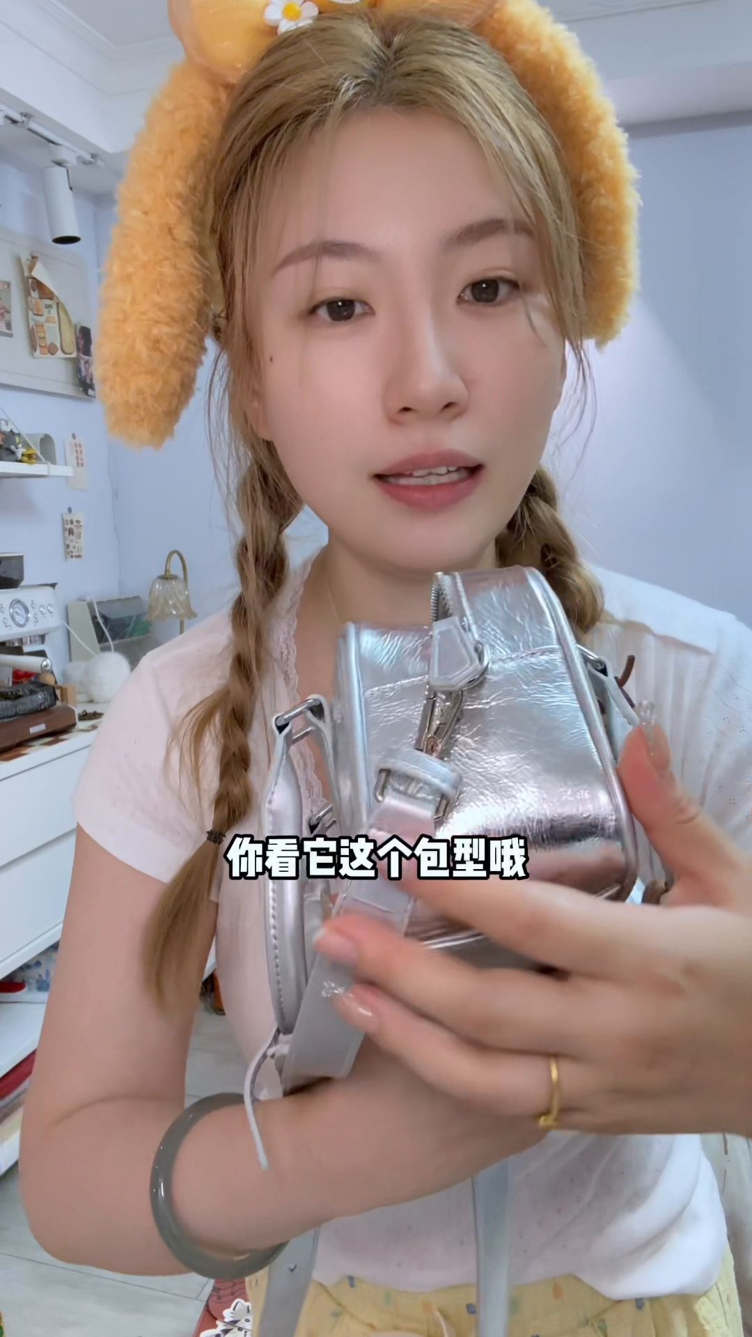 2.今年推荐一个包型,去搜小保球包,不论材质或品牌,大家丰俭由人,但无一例外都很轻且非常能装。看我这个大号的,一个补妆包、一个伸缩购物袋、一把雨伞、一个充电宝,装下这些只用了 2/3 的空间。这种包型小号的颜色和款式也很多,最近我背较多的是 UR 的银色,觉得特别适合夏天,好搭衣服。这包型没什么公摊面积,里面全是实用面积,装零碎像女生小电风扇或小补妆包都实实在在。