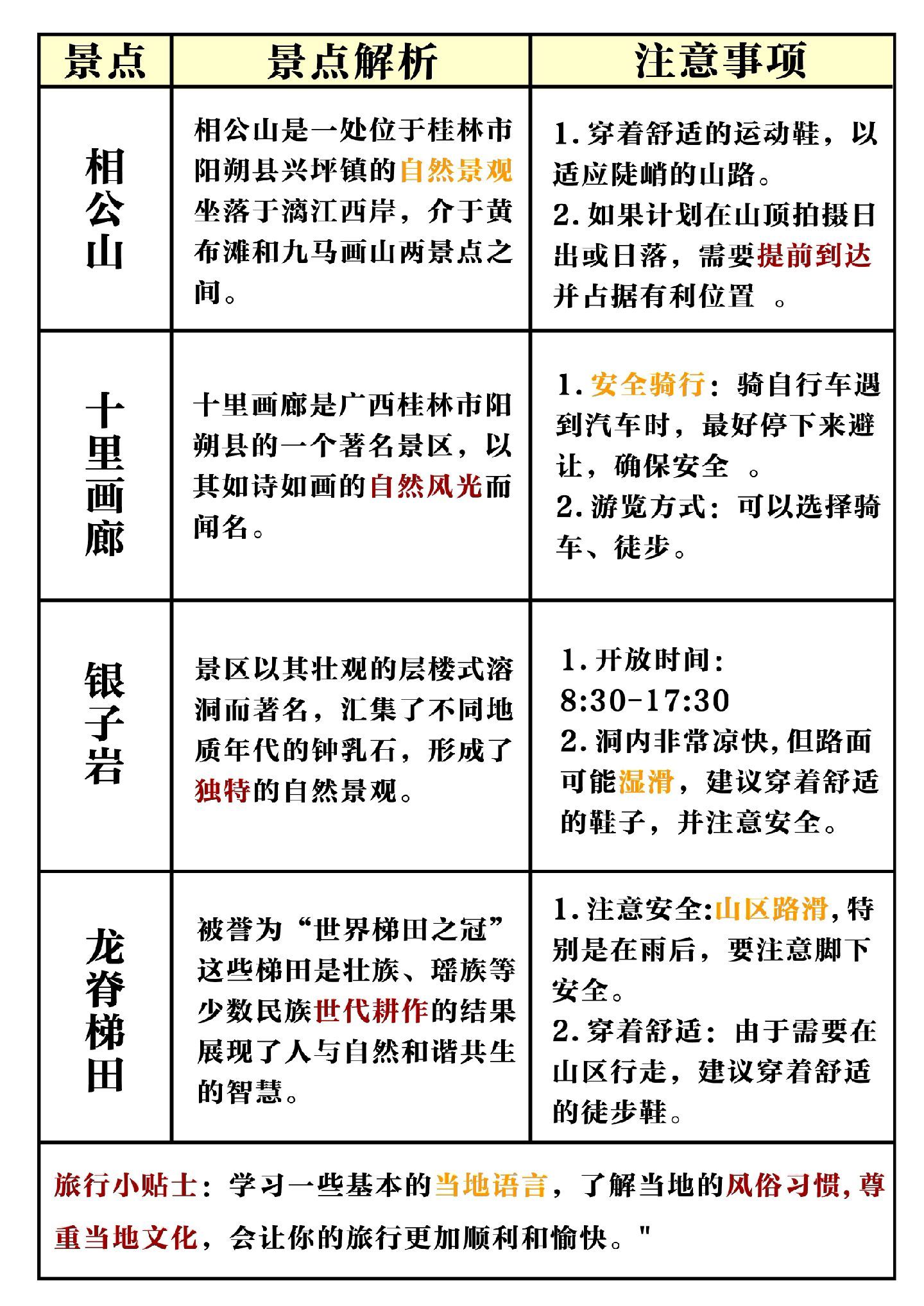关于桂林旅游tips
