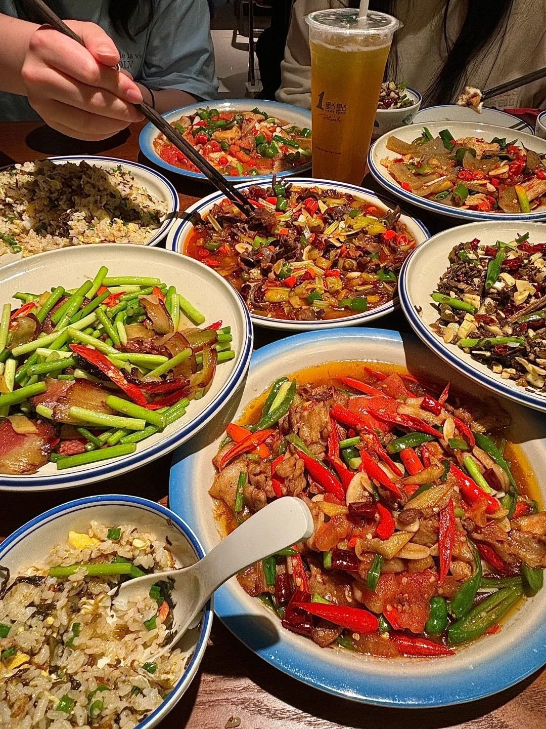 游玩累了,就在山脚一家饭店吃饭,点了干锅牛肉、烤鱼、辣子鸡等等10道贵州特色菜,3人一直想尝尝中国白酒,就让老板推荐。