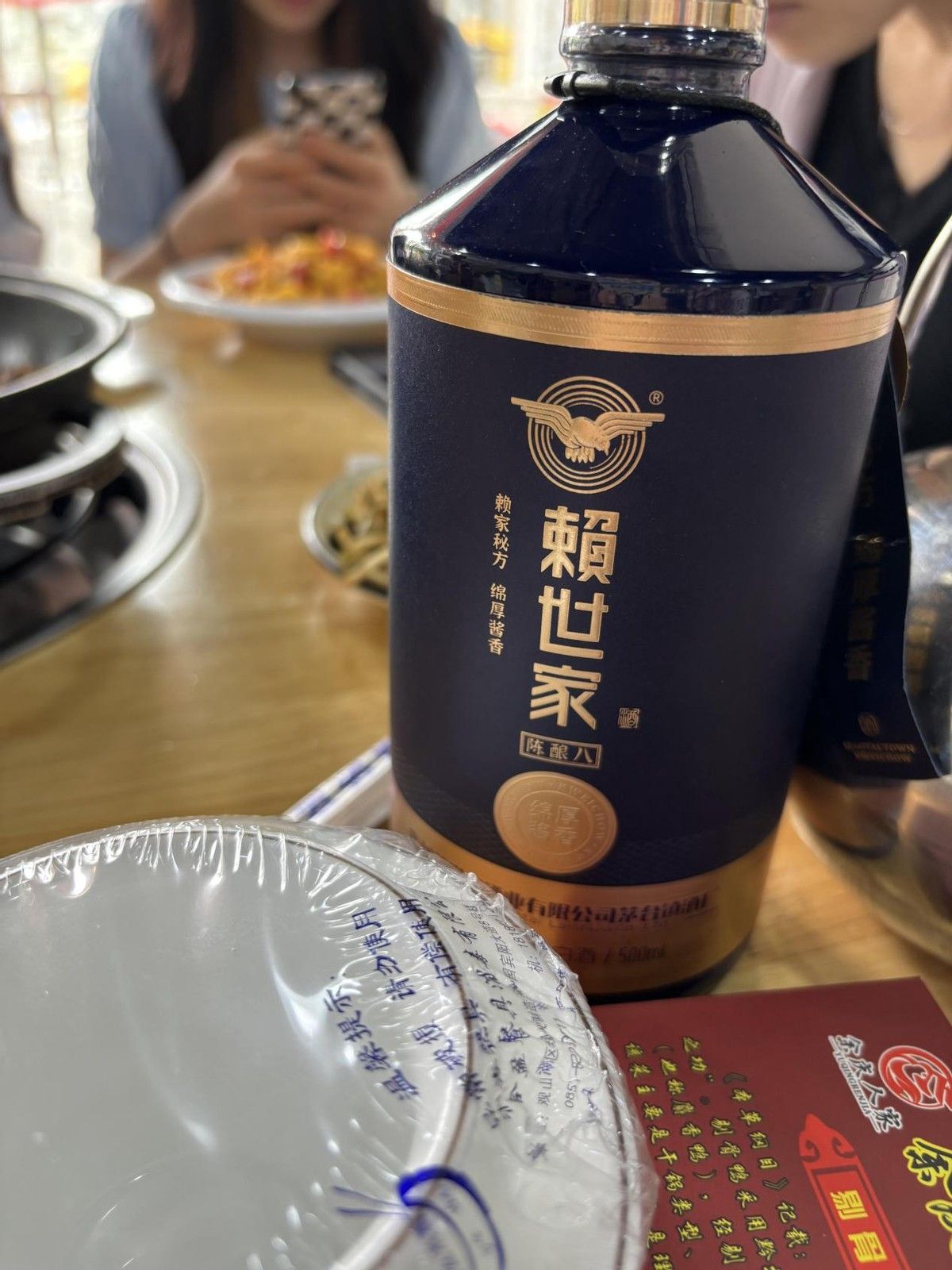 老板笑着说:“这是赖世家陈酿八,我们贵州茅台镇百年老字号酒厂生产的,这款酒只用当地的红缨子高粱、冬小麦、赤水河水来酿,加上赖氏酒厂自有的18味制曲配方,酿出来就是中国酒特有的酱香味,喝着醇厚饱满,回味悠长!”