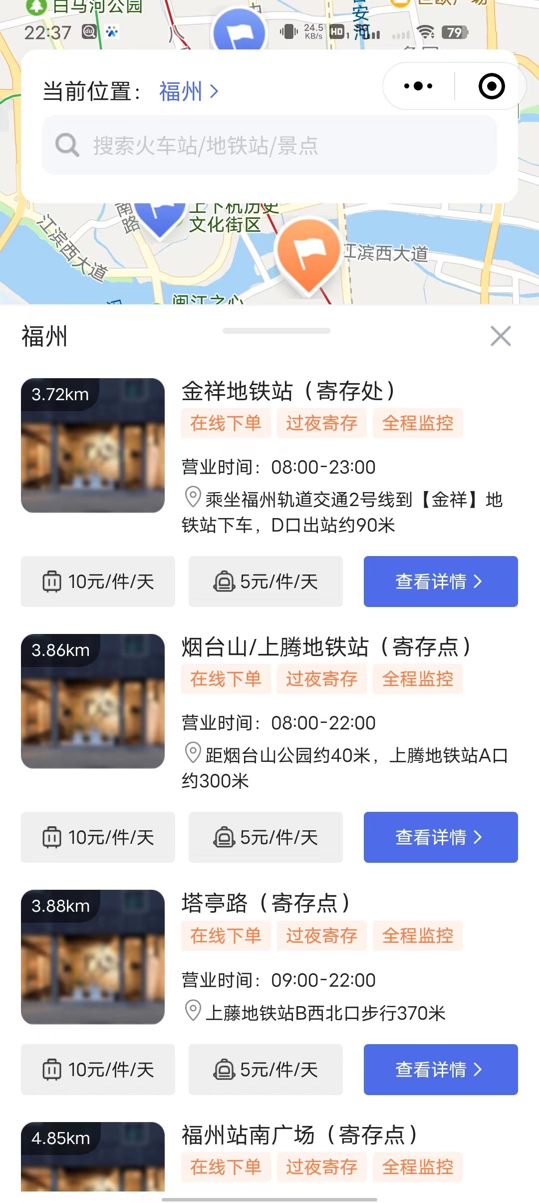 途轻松在福州的寄存点分布广泛,涵盖了主要景点、商圈、地铁站和机场车站等区域。具体包括: