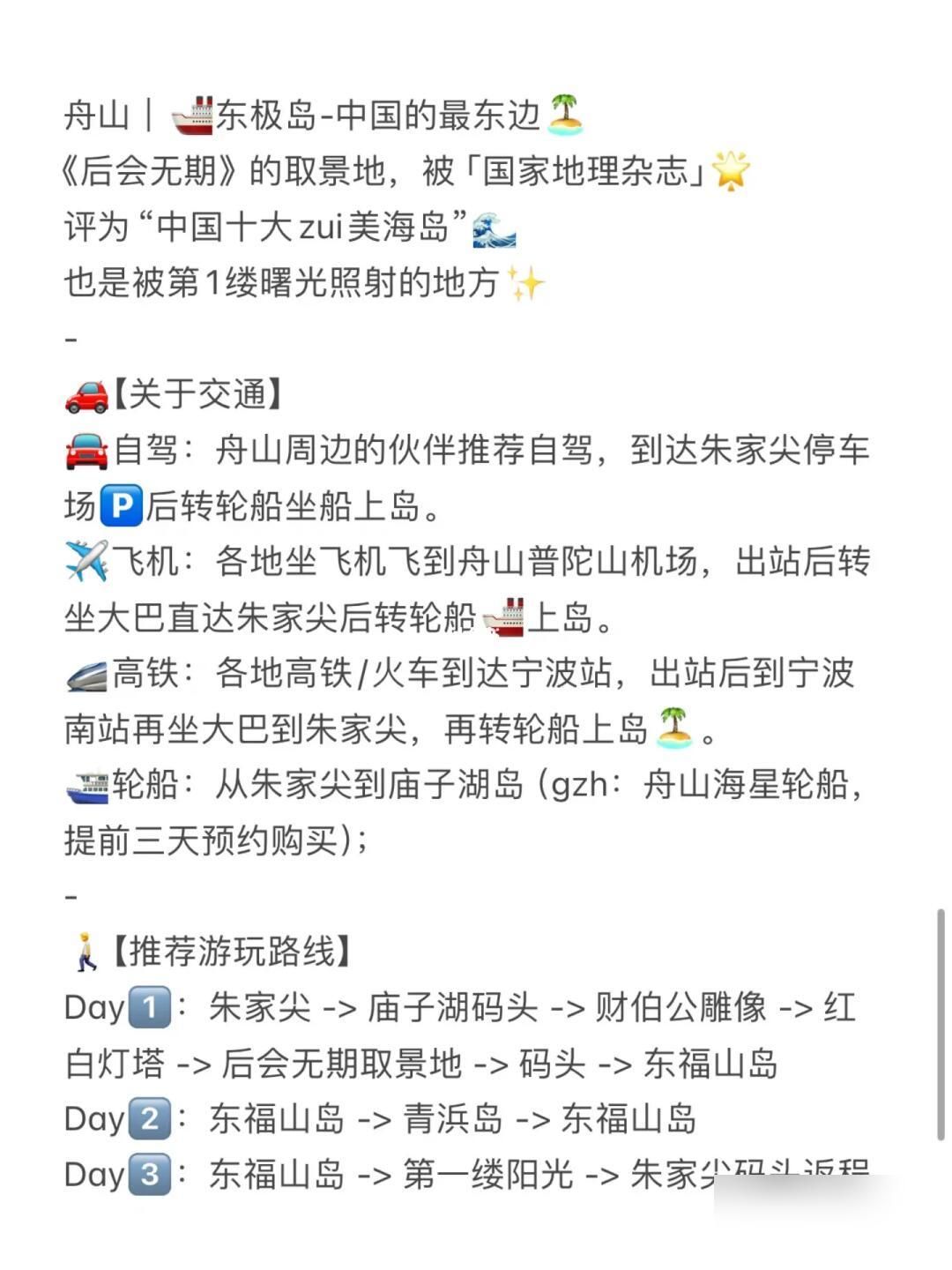 Day️:朱家尖 -> 庙子湖码头 -> 财伯公雕像 -> 红白灯塔 -> 后会无期取景地 -> 码头 -> 东福山岛