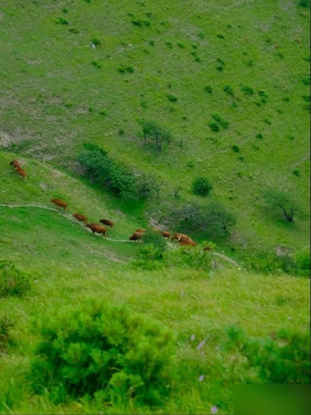 微风拂过,草丛轻轻摇曳,仿佛在为这片土地演绎着动人的舞蹈。在这里,牛羊不问来客,风吹草低处怡然自得