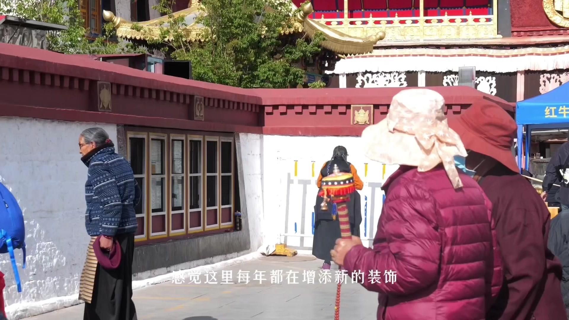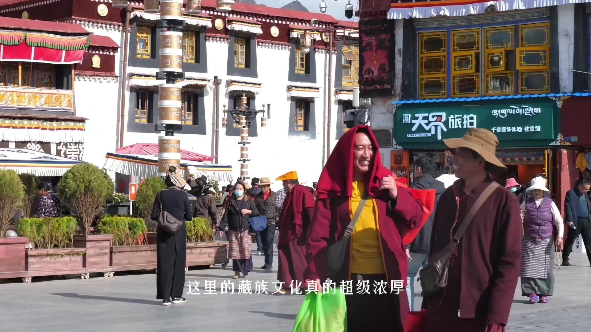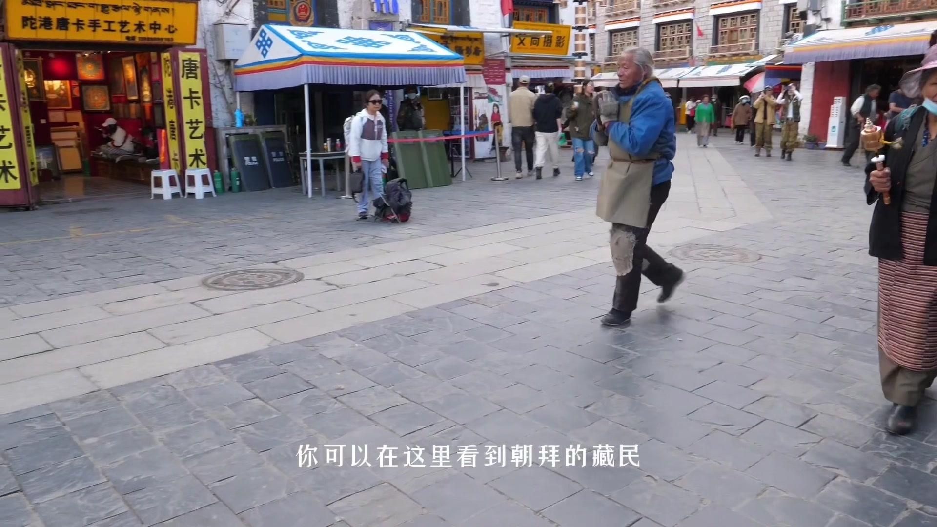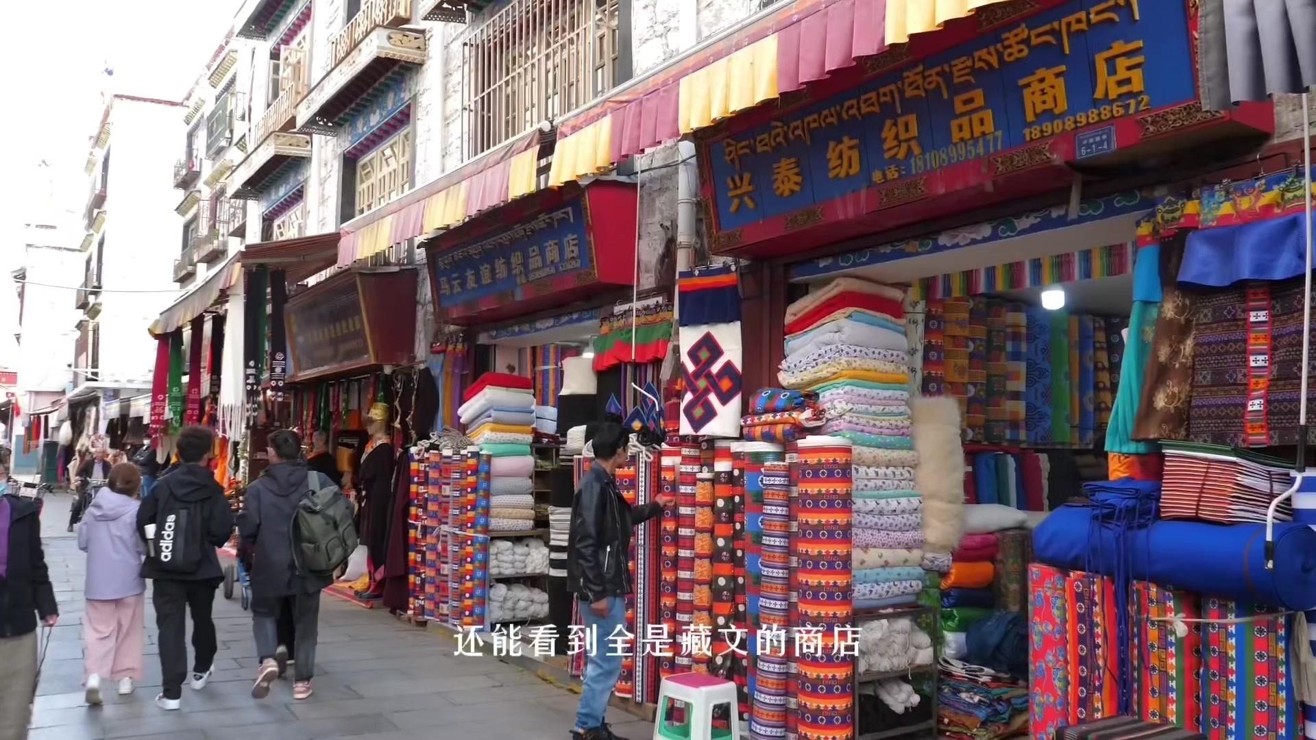 然后把东西放在酒店后,就可以到处逛一逛了。首先可以来八廓街看看,这里的藏族文化真的超级浓厚,你可以在这里看到朝拜的藏民,不得不佩服他们毕生的信仰,还能看到全是藏文的商店,还有街上藏族儿童的服饰,感觉这里每年都在增添新的装饰。