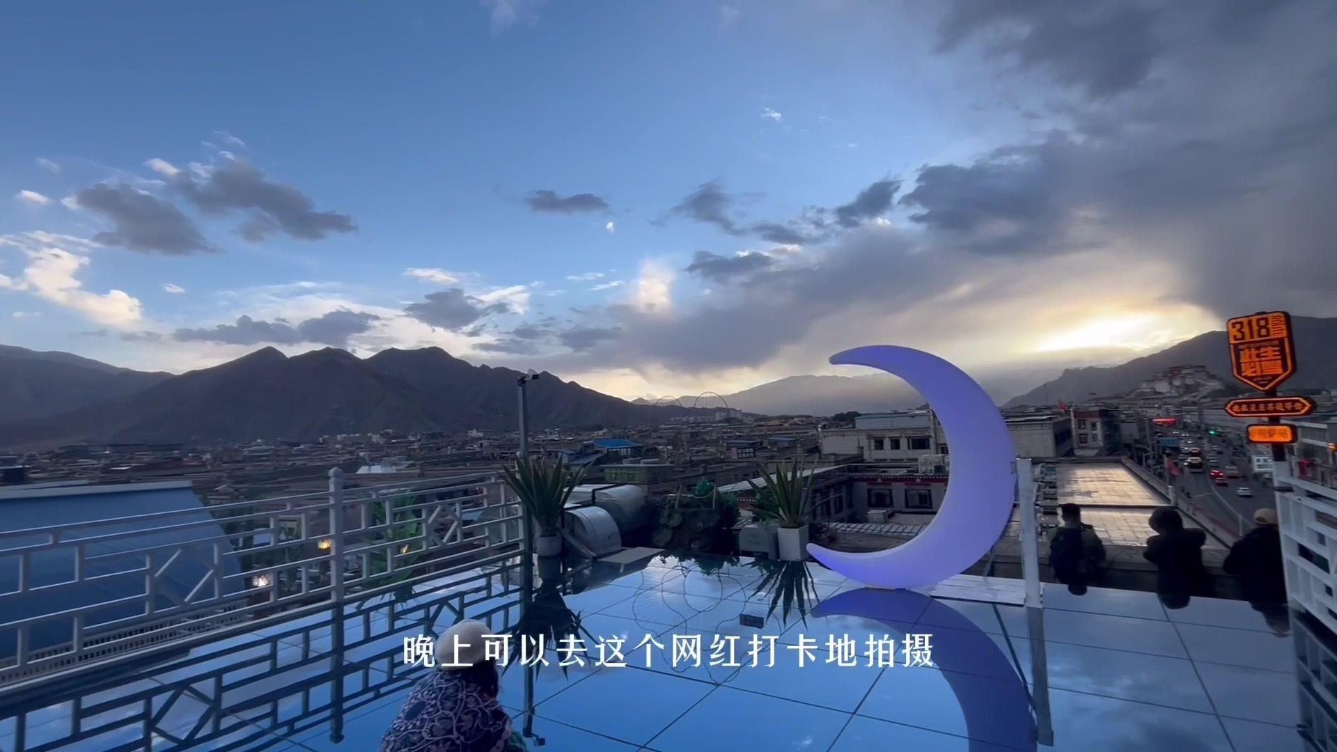 晚上可以去这个网红打卡地拍摄,需要买一份30块的饮品,但我感觉很合心意,大家都在等待布达拉宫灯光亮起的瞬间,这里也能认识很多志同道合的伙伴。晚上的八廓街也很出片,就连路灯都是这种吉祥寓意的天珠,感觉很是应景。