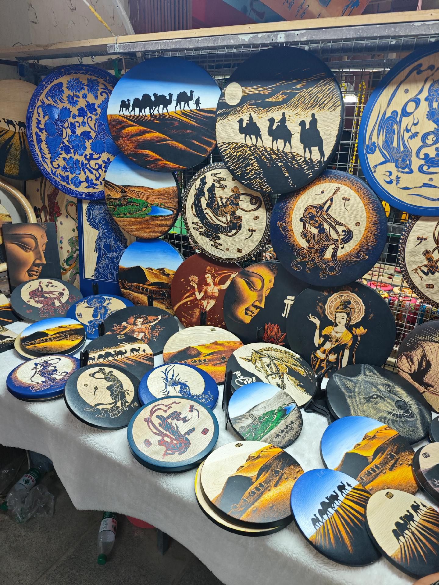 另外敦煌夜市主街也很值得逛逛,很有西域特色,敦煌泥板画、木版画、敦煌主题丝巾、夜光沙画、骆驼玩偶、敦煌主题的各种周边(杯垫、书签、冰箱贴、背包等)