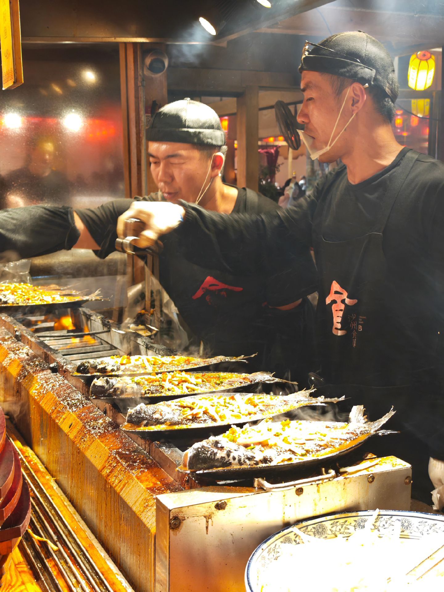 漠北烤鱼:烤鱼摊子看起来气势满满,吃起来酸辣可口。