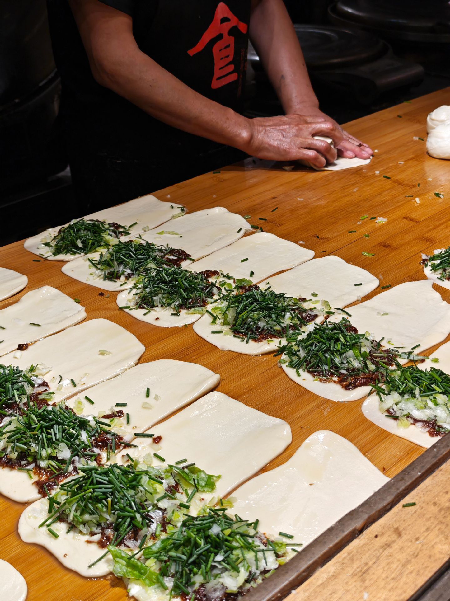 沙葱牛肉饼:超人气美食,外皮很酥脆,里面是沙葱和牛肉,沙葱味道很浓郁!