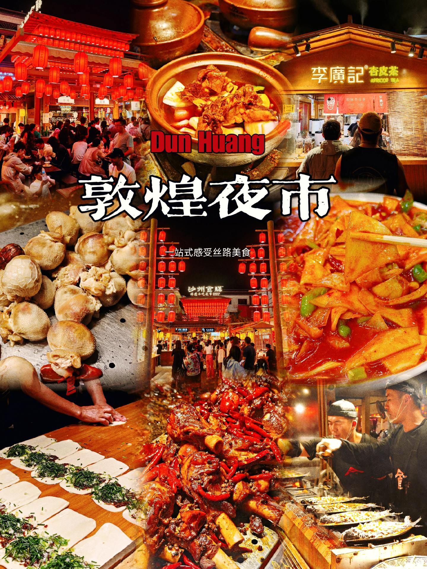 图文伙伴计划2024 #寻找100个城市路线图鉴 来到敦煌,想要感受夜幕降临后浓郁的异域风情?想要一站式吃到各种丝路美食,一定要来敦煌夜市逛吃逛吃哦!要不是亲自前往,真的很难想象,夜里12点的敦煌夜市依旧是人头攒动烟火气十足,让我感受到那种恍惚穿越到大唐盛世的华丽与繁荣。