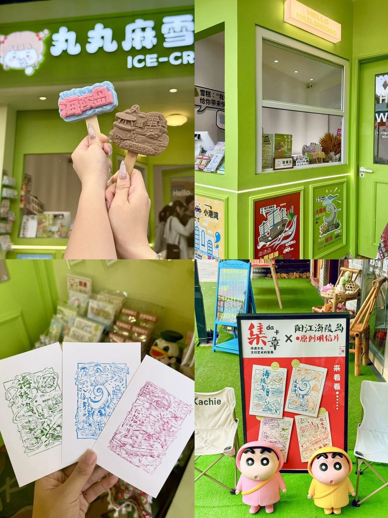 海陵岛美食打卡 当然不能少了文创性“海陵岛”雪糕夏天就该来一条雪糕口味可以自己拿~店内还有冰箱贴以及明信片等等