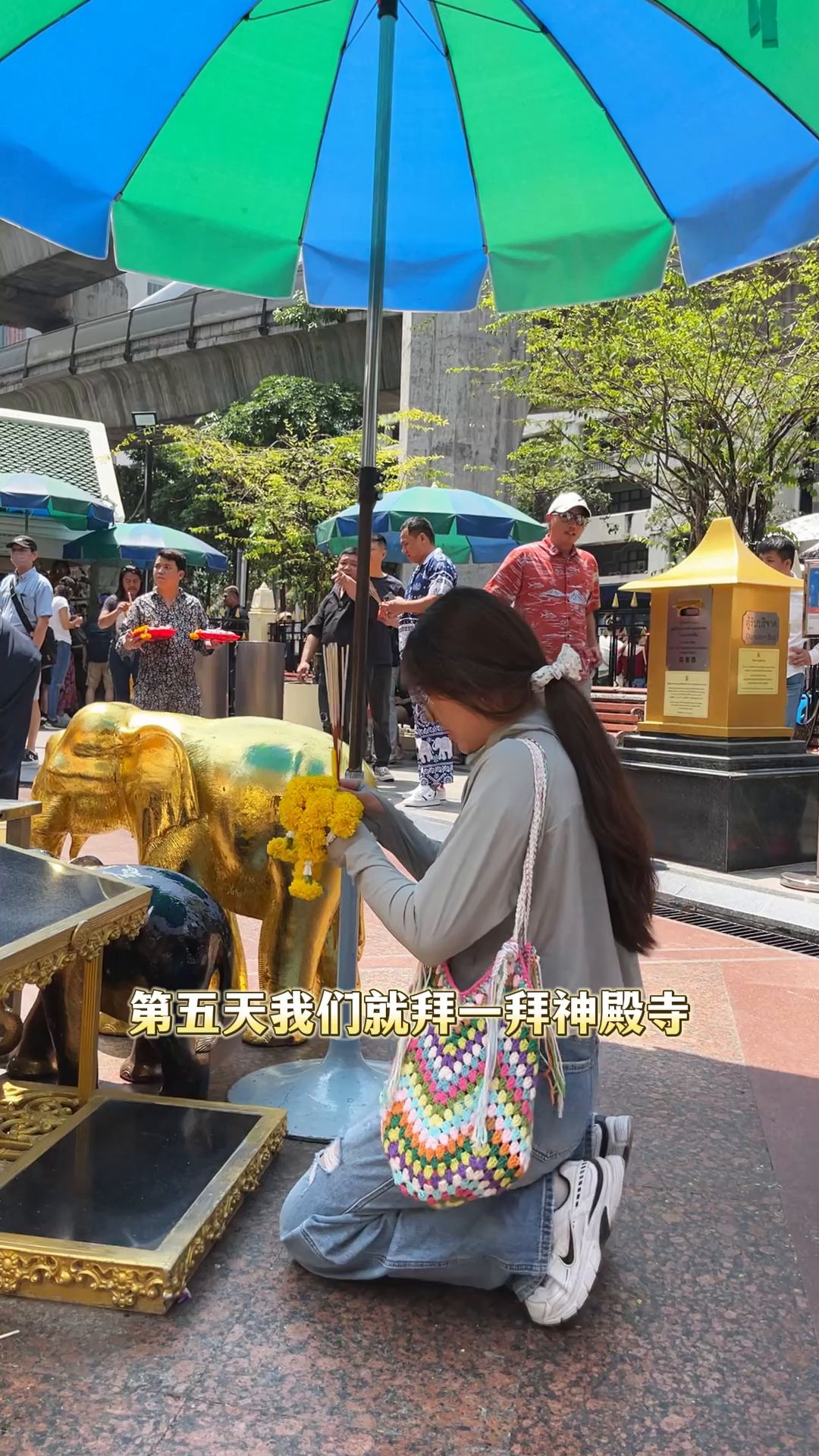 ·第五天就拜一拜神殿寺,拜一拜四面佛。下午去到大象庄园,骑骑泰国的大象,钓一钓鳄鱼。然后就返回曼谷,打卡一下王权免税店。