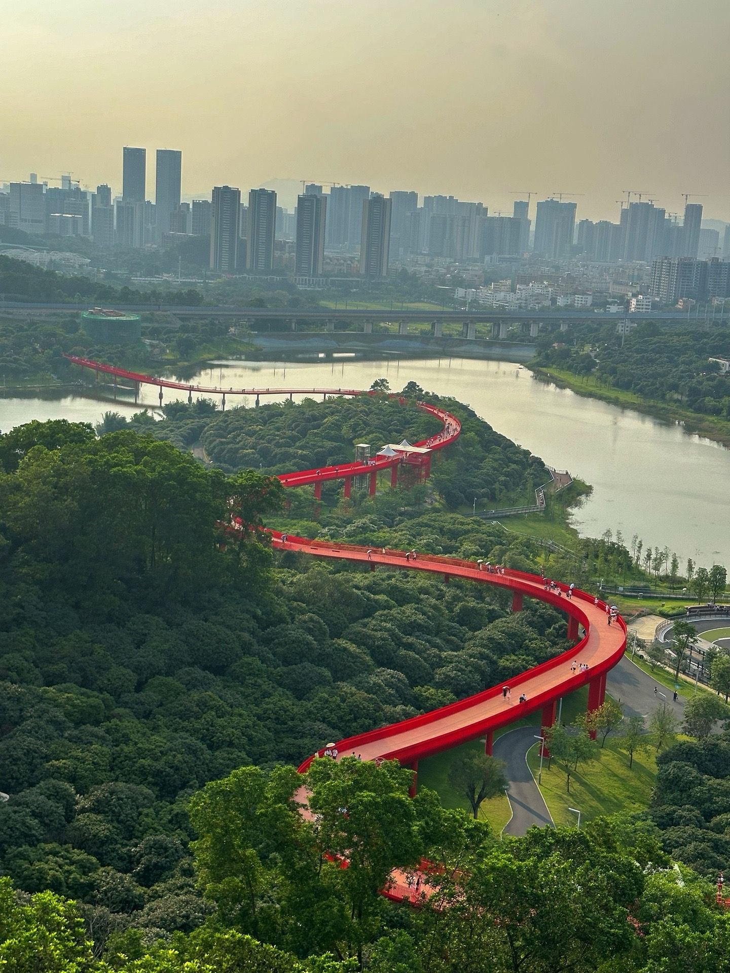 虹桥公园是深圳市光明区的一个新地标,原名为“红桥公园”。整个公园被划分为3个区域,分别是:入口区、碧湖区、森林区,这3个区域被一条长为4.3公里的“红色空中栈道”连接
