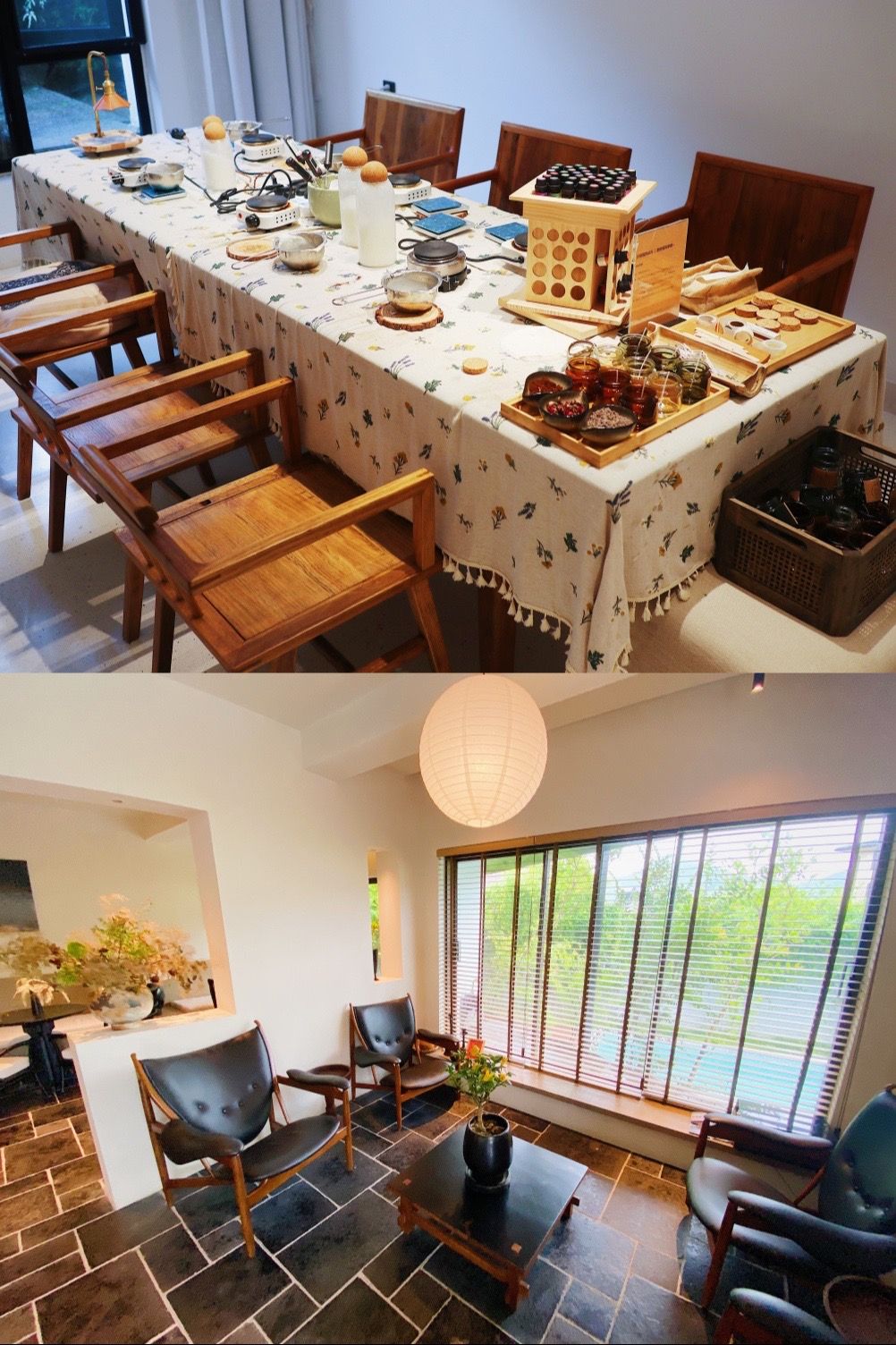 一楼大堂划分为咖啡厅和香薰制作室两块区域,管家做咖啡的手艺非常专业,特调的木姜子咖啡真的很好喝。在每天下午的手工活动时间内,住客还可以体验自制香薰蜡烛并将成品带回家。