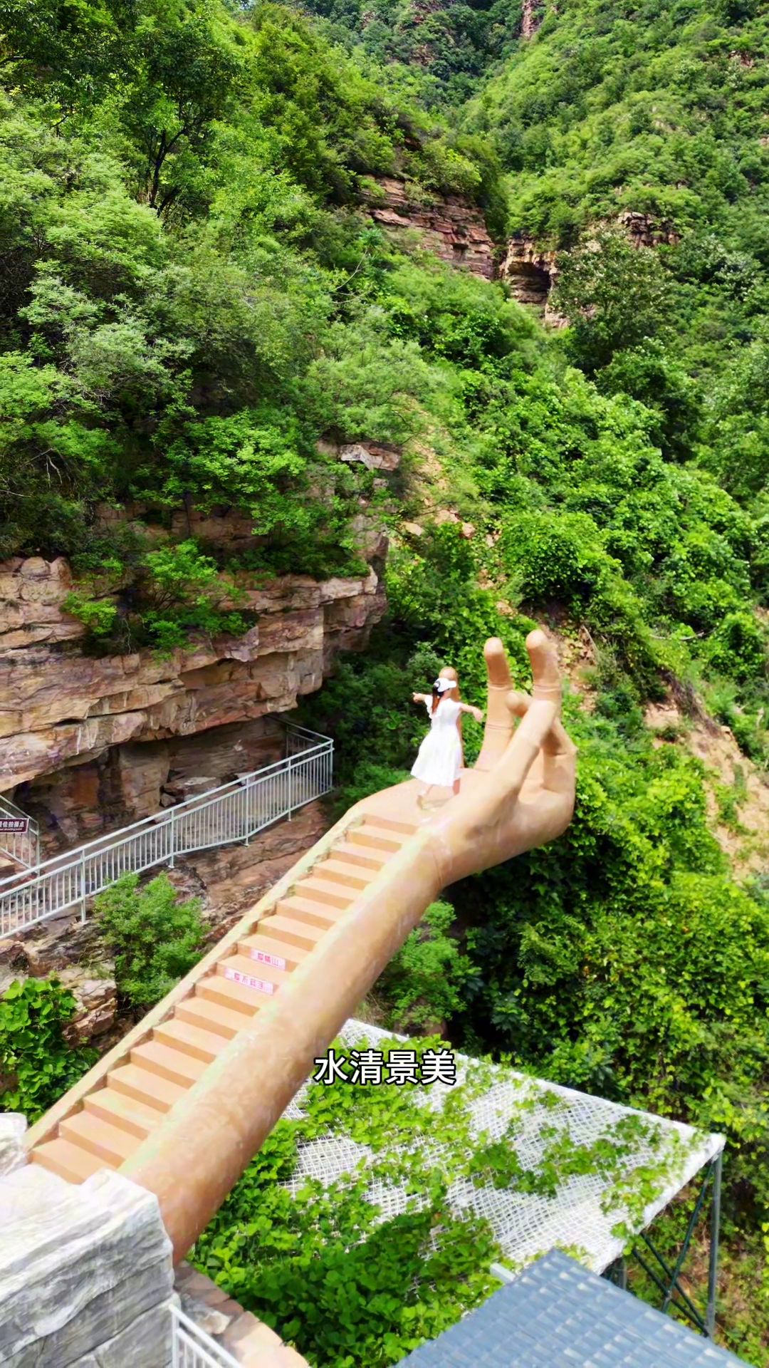 2. 朋友们大家好,现在我来到的是中国爱情山,邢台天河山。爱情山山美水美,这里天蓝地绿,水清景美。走进爱情山,每一步都特别美,每一处都是打卡圣地。红墙小院、爱情广场,爱不释手。一步两步花海流瀑,在这山美水美的地方,绿树葱葱,溪水潺潺,逆流而上。
