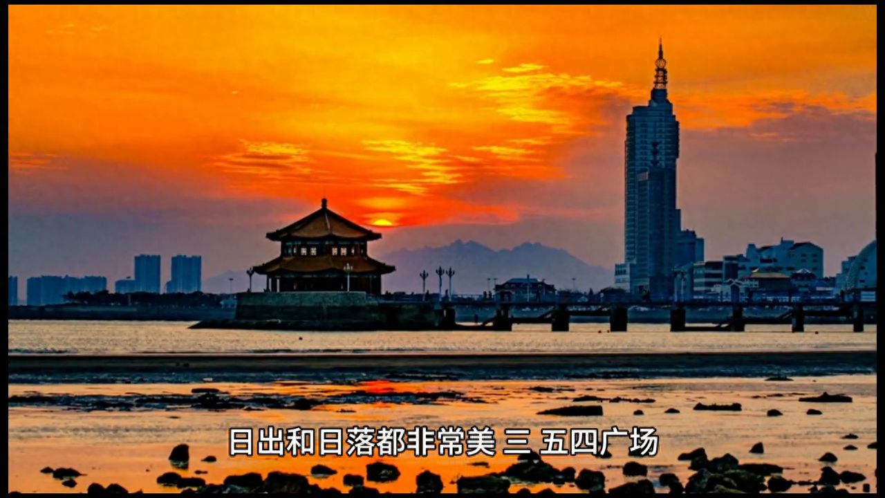 ·三、五四广场。这里是青岛最具代表性的城市雕塑"五月的风",也是青岛的标志性景观。