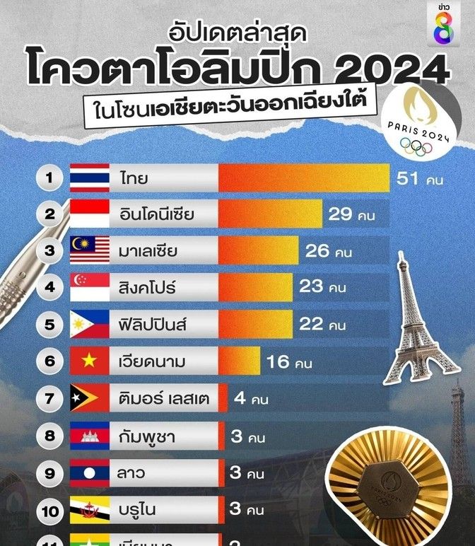 各国地区奥运会运动员数揭晓泰国人数东盟最多、全球位列第49!