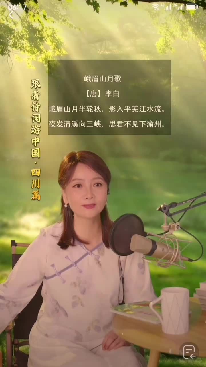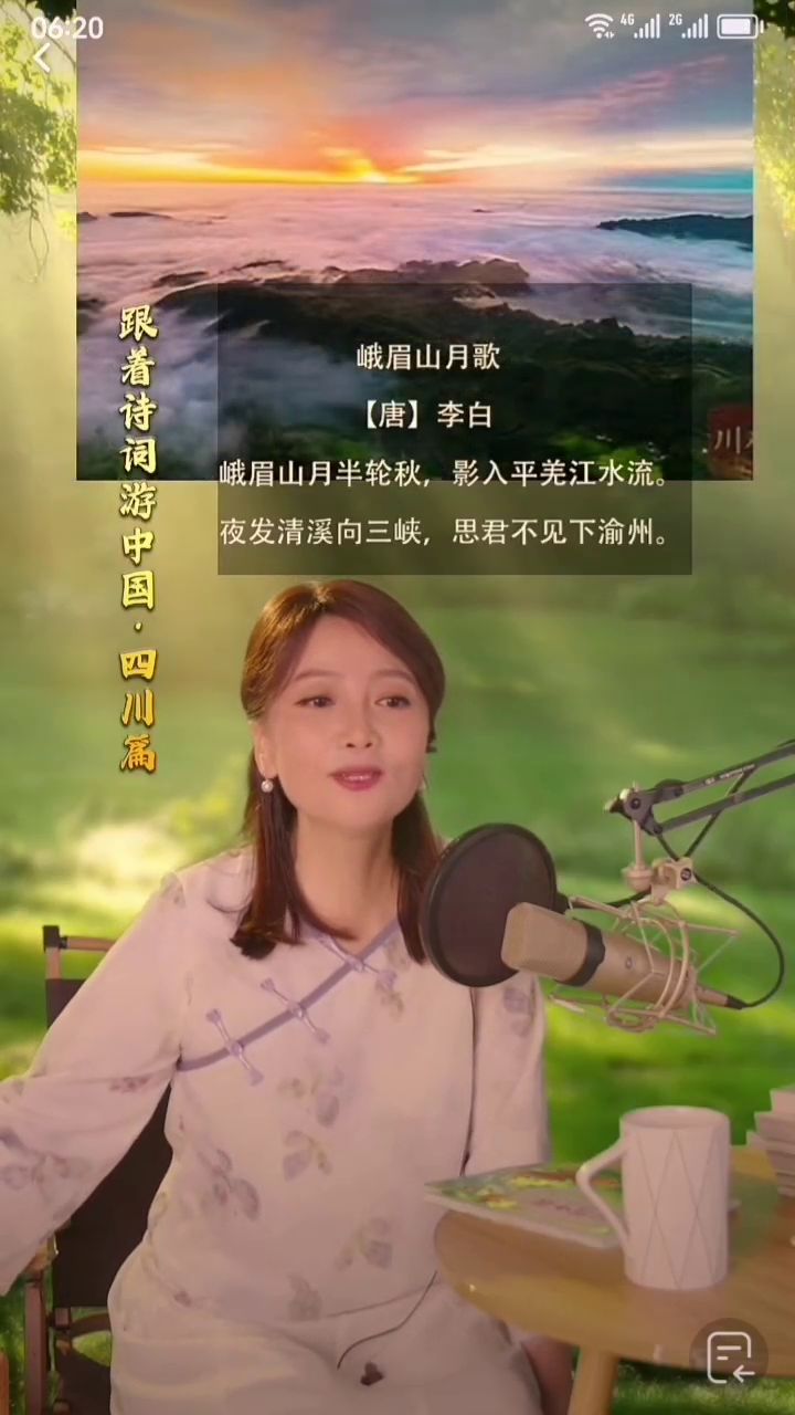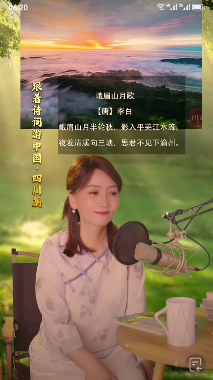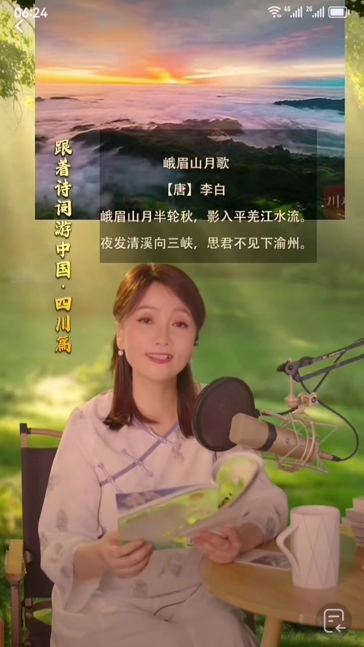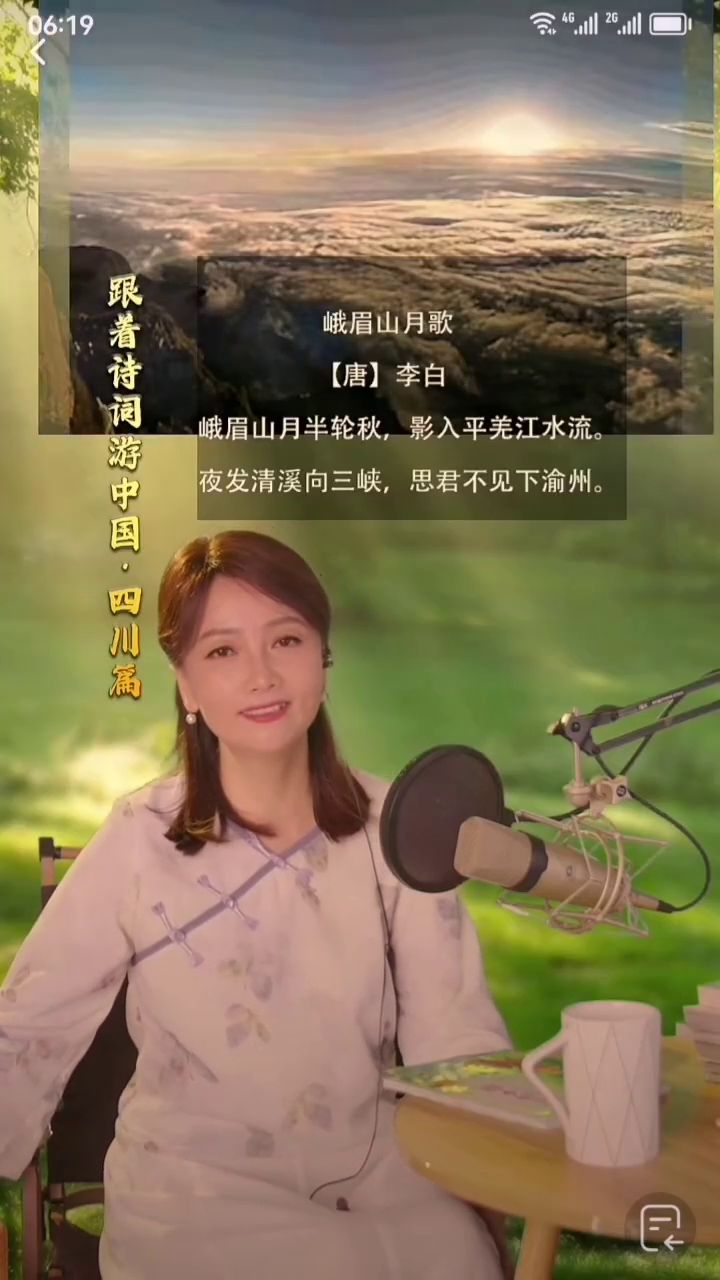 看一下峨眉山的照片,现在的峨眉山是什么样?我把李白的这首诗就打在这个照片上好不好?这样又能品诗又能够看到峨眉山的风光。