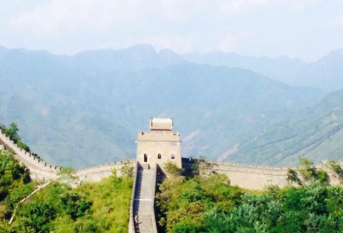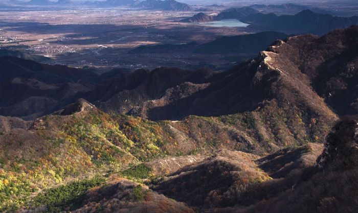 在蓟县的这一段长城,是古时的重要关隘,也是县内唯一的关城,因山崖岩石多为黄褐色,每当夕阳西下,被映照得金碧辉煌,故得名黄崖关。起伏跌宕,景观秀丽,如果加上不错的天气,想必是一幅壮美的图画。