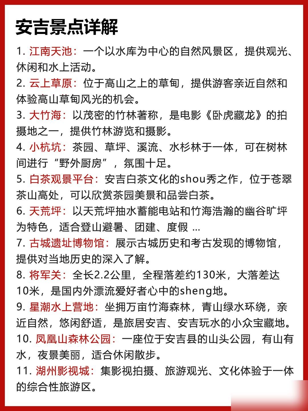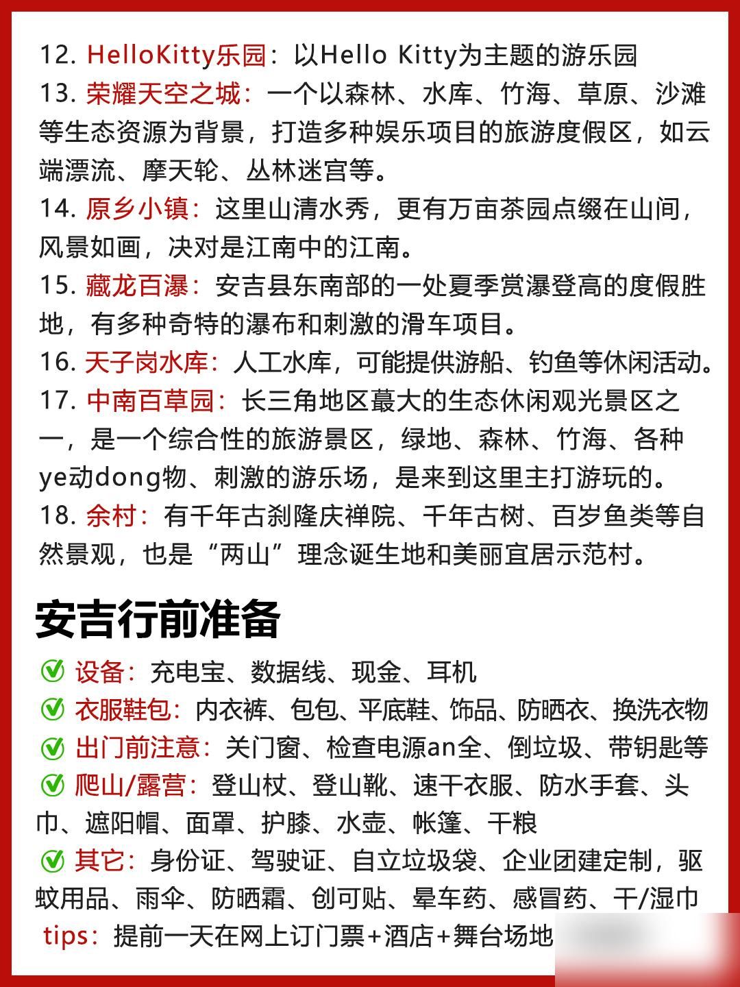 没有做攻略和准备真的不要去安吉!!虽然很好玩,但是不做攻略太容易踩雷了!跟姐妹在安吉玩了一周回来后特意整理了一下安吉的吃住行攻略,分享出来希望可以帮助到来安吉玩的姐妹!
