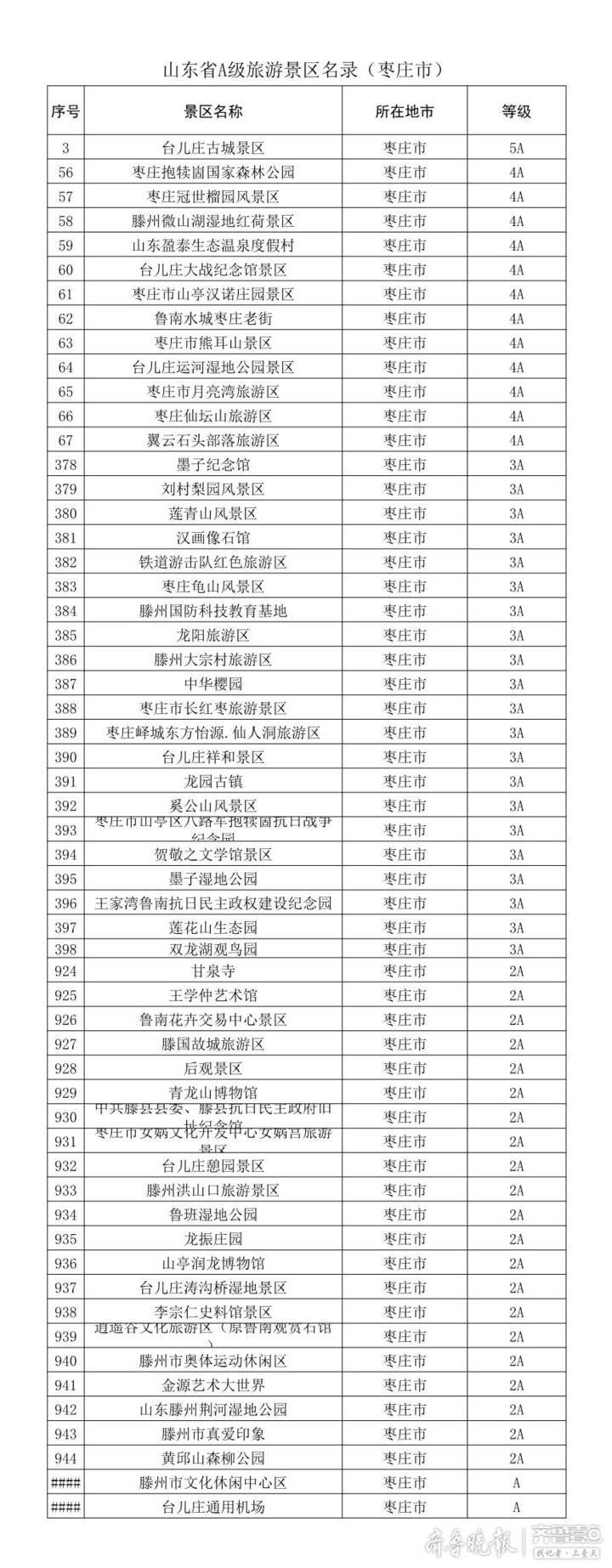 4月24日,山东省文化和旅游厅发布山东省A级旅游景区名录。截至目前,枣庄市共有A级及以上旅游景区57处。