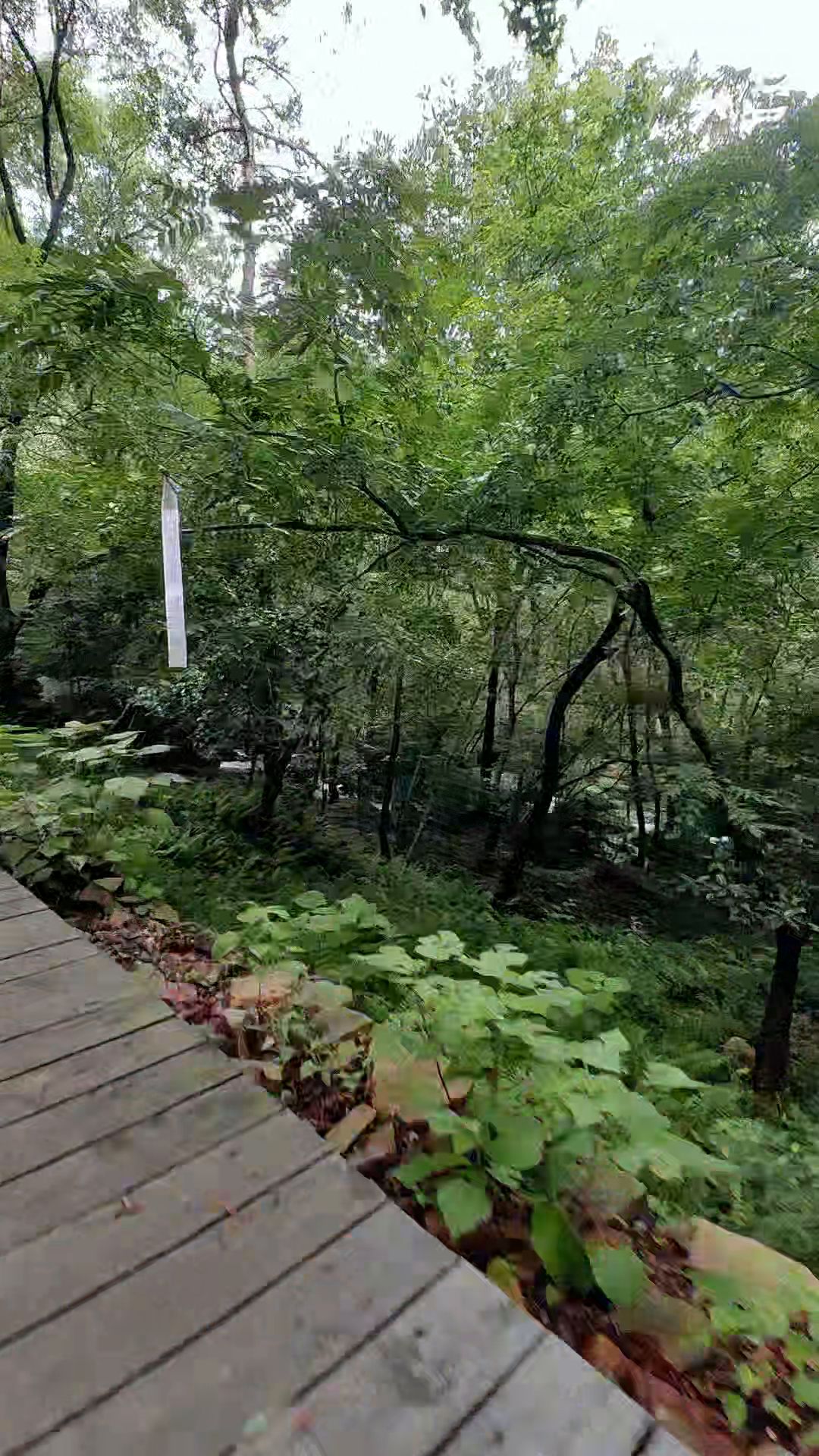 6. 到了江家湾牌坊以后直走是连珠洞,往右走,沿着木板路一直向前走,木板路没有什么分叉,一直向前就可以了。即使看到了有的小好的之路也不要转弯,沿着木板路一直向前,两边的树荫还是很密的,大家可以看得见,拍拍照、拍拍视频也是不错的。