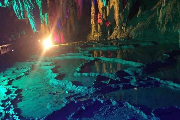 进入奇梁洞景区你会惊叹于大自然的鬼斧神工,特别是整个景区在灯光效果的映衬下,就像进入了一个光怪陆离的梦境世界一样,洞里最大的亮点就是还有“古战场”,时不时还有黑暗蝙蝠飞过,从古战场到龙宫景点需要乘坐小船,在这奇丽的场景中荡舟,有一种要穿越的感觉。