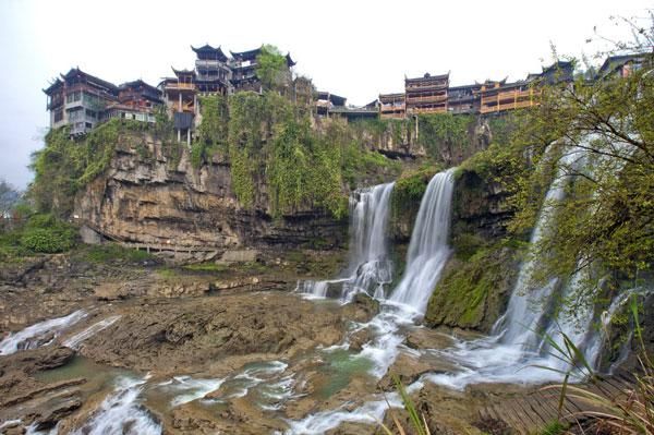芙蓉镇是一个有着两千多年历史的古村子,芙蓉镇本不叫芙蓉镇,叫“王村”,因《芙蓉镇》在此取景而出名后改名为“芙蓉镇”,这座千年古镇建在瀑布之上,土家吊脚楼紧贴着瀑布,这些吊脚楼大多用一块块木板拼接而成,已经留下岁月发黑的印记,想近距离接触瀑布的话,可以走到瀑布背面的山洞中,观看酉水河的秀色。