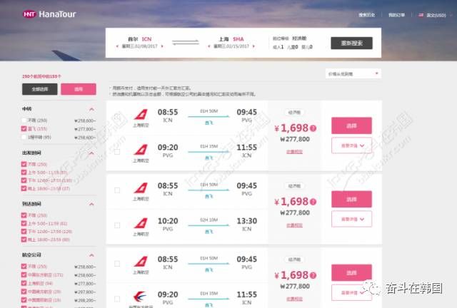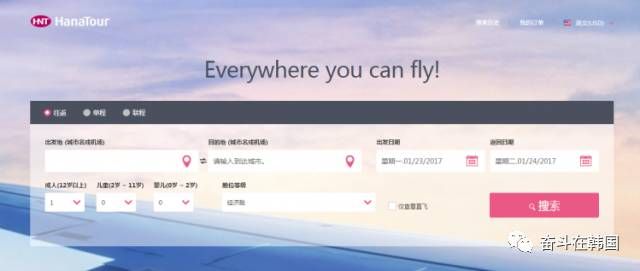 因为不懂韩语, 不能在HANA预订机票的朋友们, 可以在便捷的中文网站预约了。