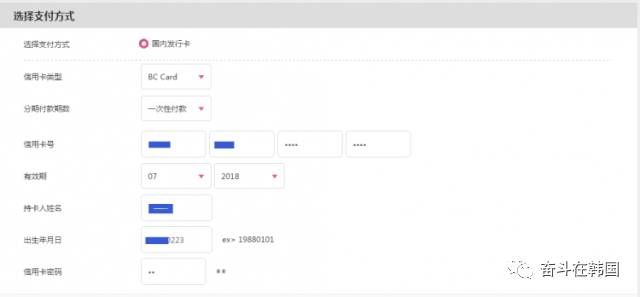 目前HANATOUR只能使用韩国国内发行卡才可以支付金额。 就是说现在只能用韩国信用卡来支付, 但秋后会陆续的添加其他支付方式(如:VISA、银联等)。