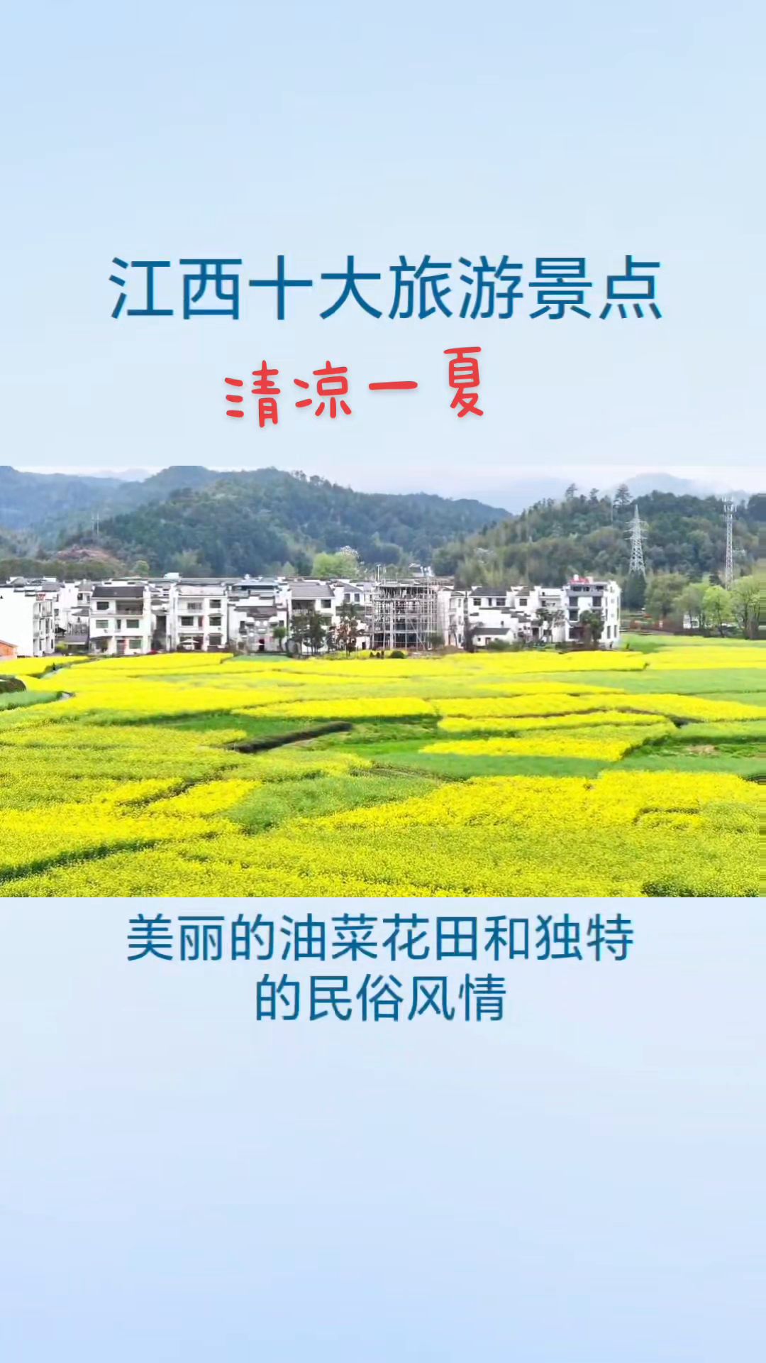 8. 婺源:位于上饶市婺源县,被誉为“中国最美的乡村”。婺源拥有古朴的徽派建筑,美丽的油菜花田和独特的民俗风情,是摄影爱好者的天堂和游客放松身心的绝佳去处。