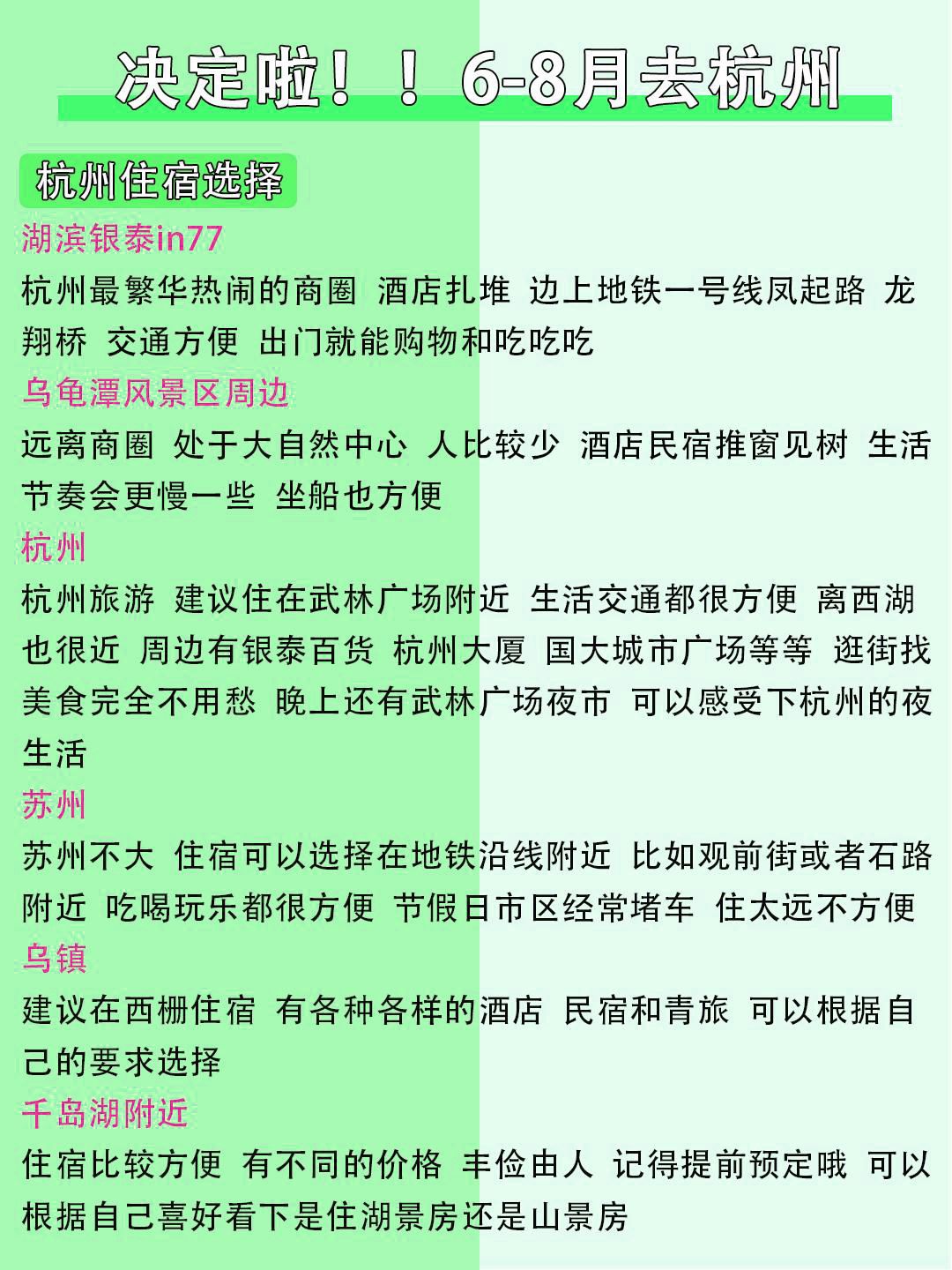 决定啦!6-8 月去杭州,四天三晚详情版路线参考。