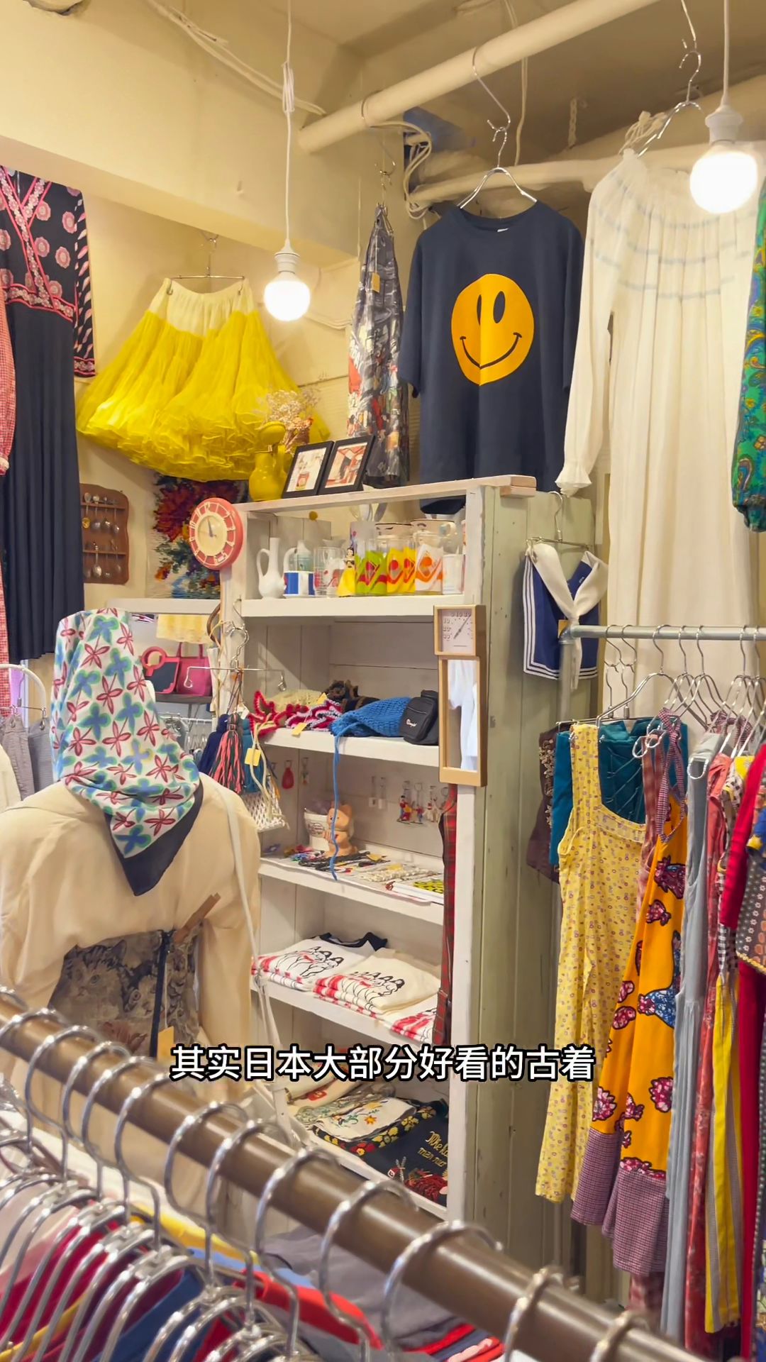 这些店都是在小巷子里,其实蛮难遇到的,这些古竹、纱纱这些感觉就是我超爱的。其实日本大部分好看的古着都是来自于欧美,这个黄色的连体裤我好喜欢,可惜太大了。太久没来日本了,现在都是要用芯片刷卡,我的visa信用卡都还没升级,还好有朋友帮我付了,谢谢悦萘。
