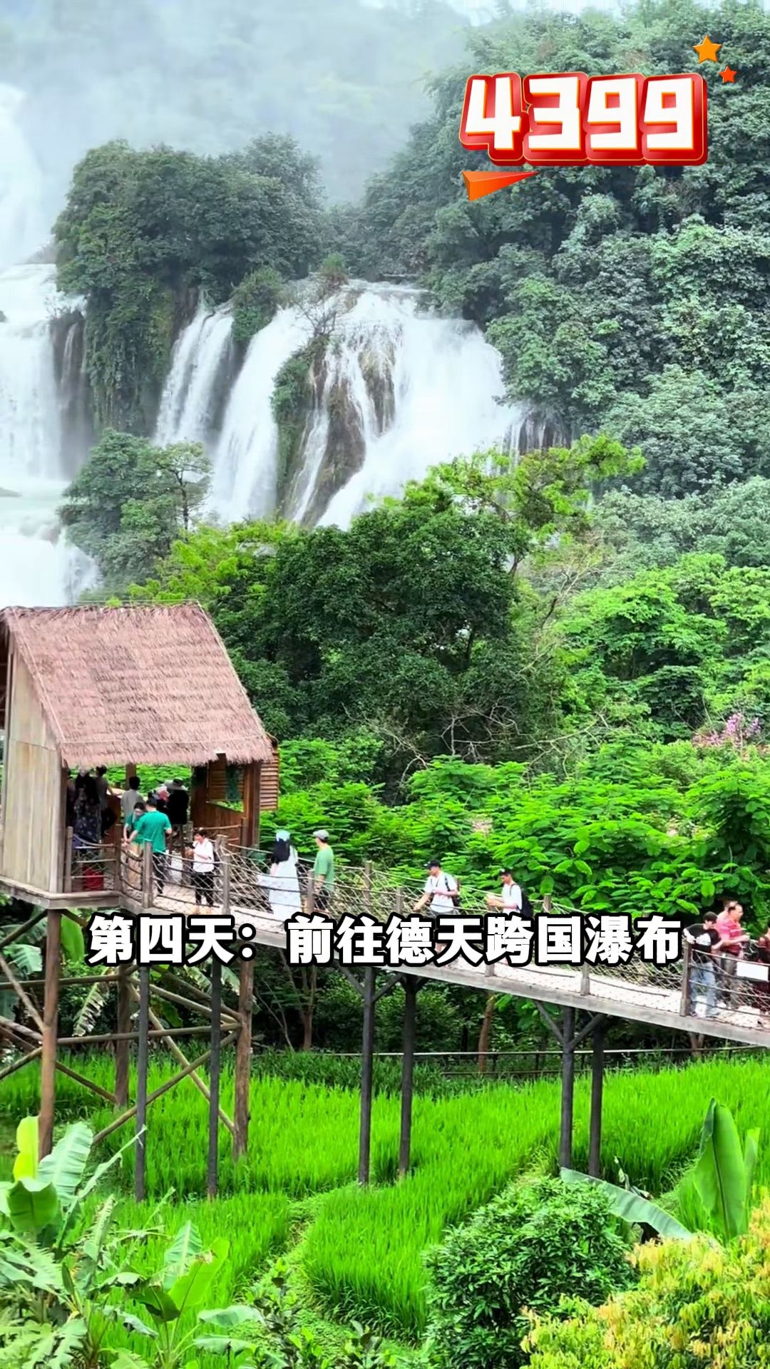 ·第四天:前往德天跨国瀑布,乘坐游船游览瀑布,从不同的角度欣赏瀑布的美景,还可以近距离观赏到越南一侧的瀑布风光。下午前往明仕田园,可以选择乘坐竹筏游览明仕河,欣赏两岸的山水景色和田园风光。