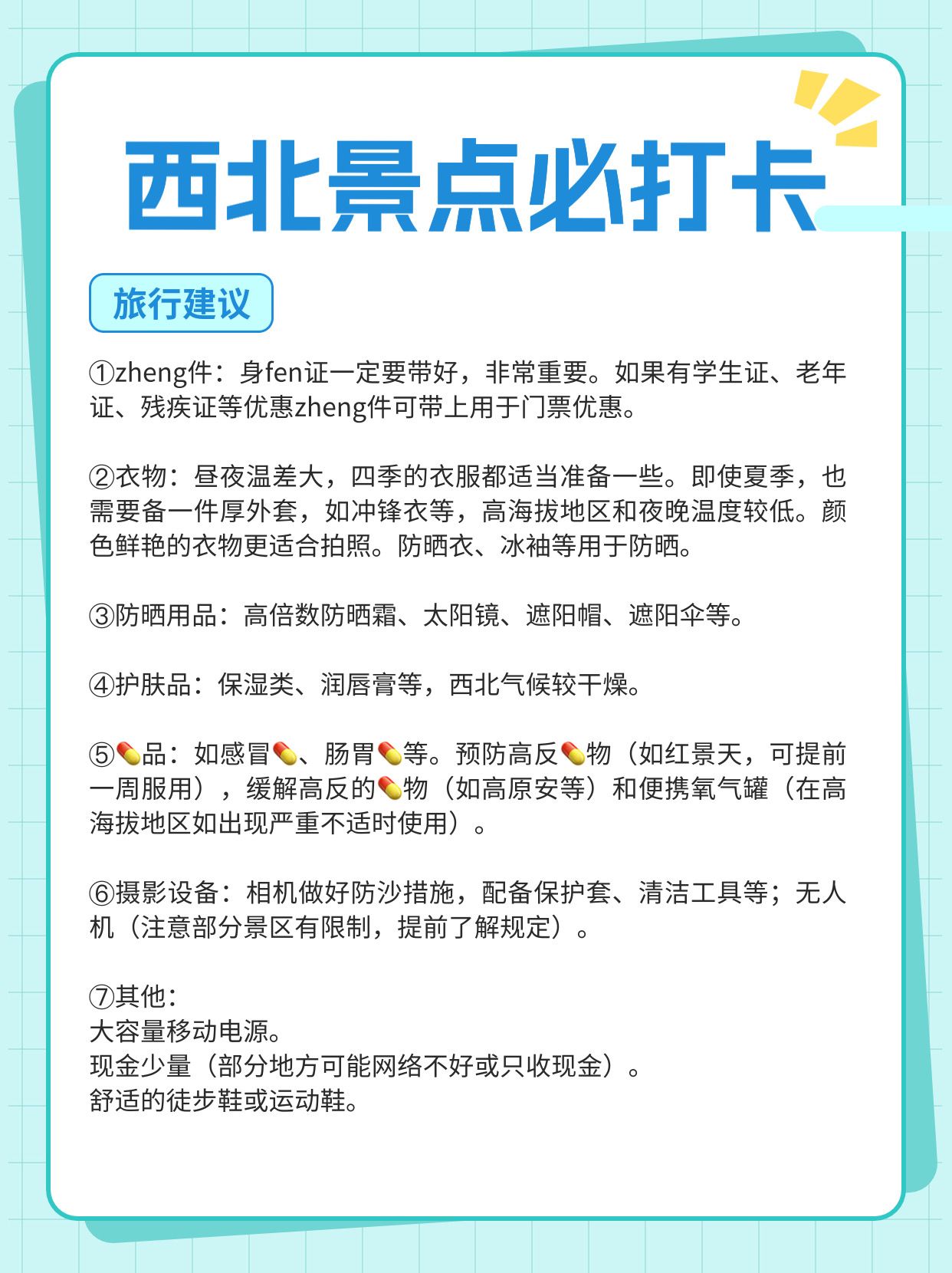 1. 高反预防:青甘地区部分景点海拔较高,提前准备相关yao物,注意休息,避免剧烈运动。