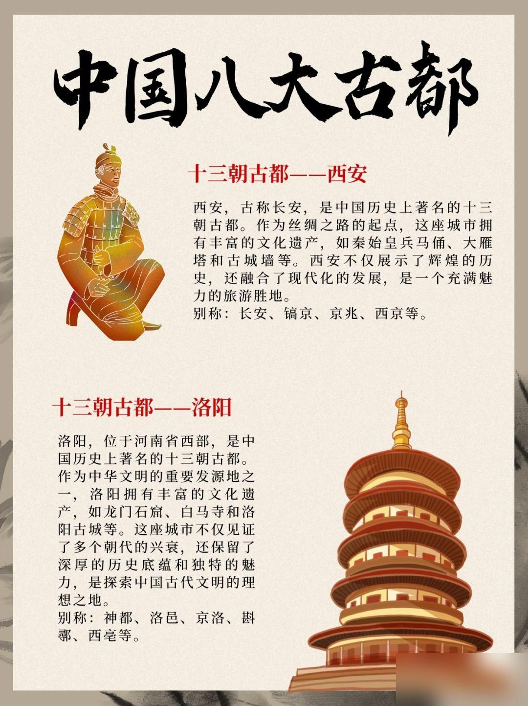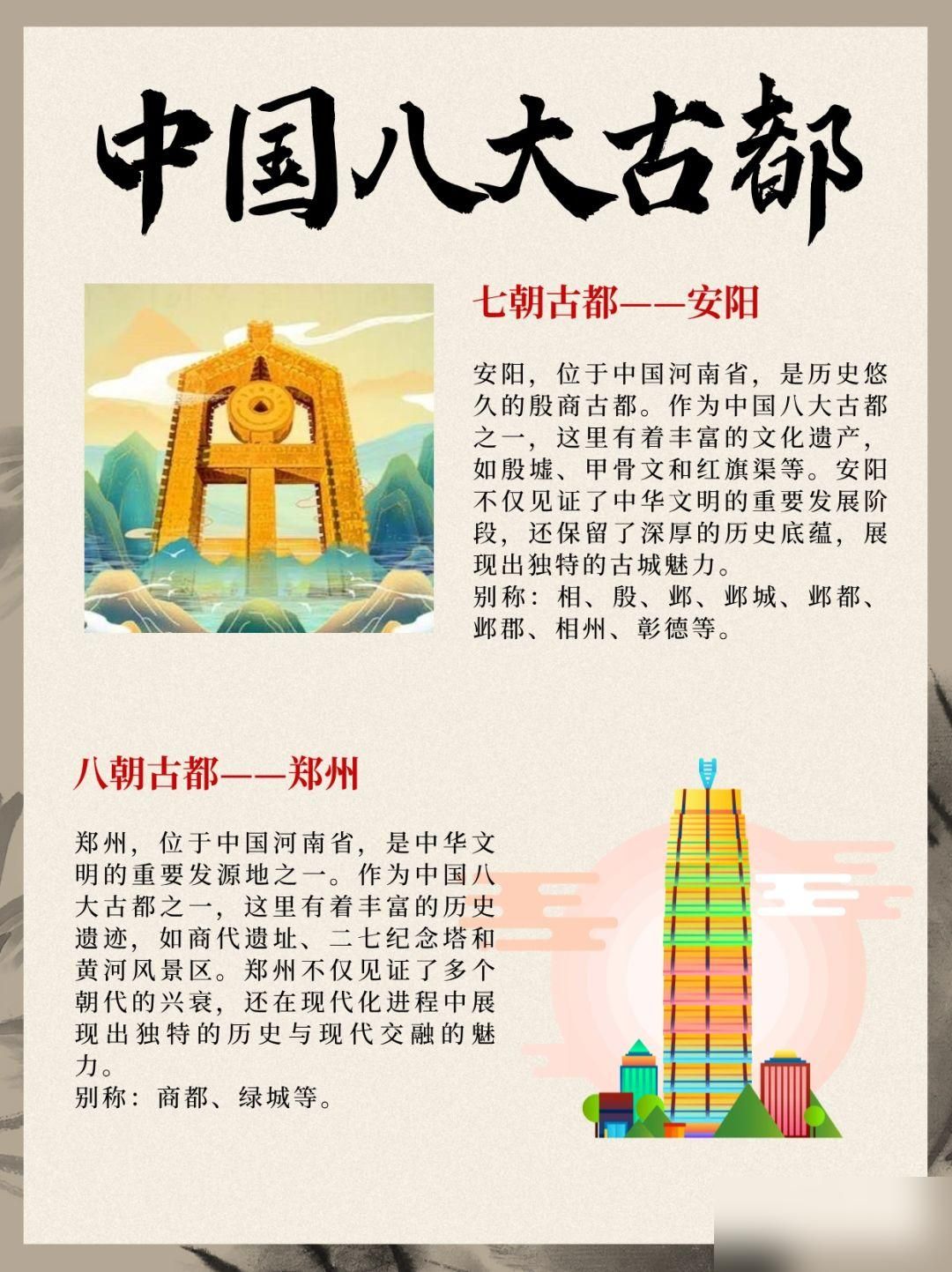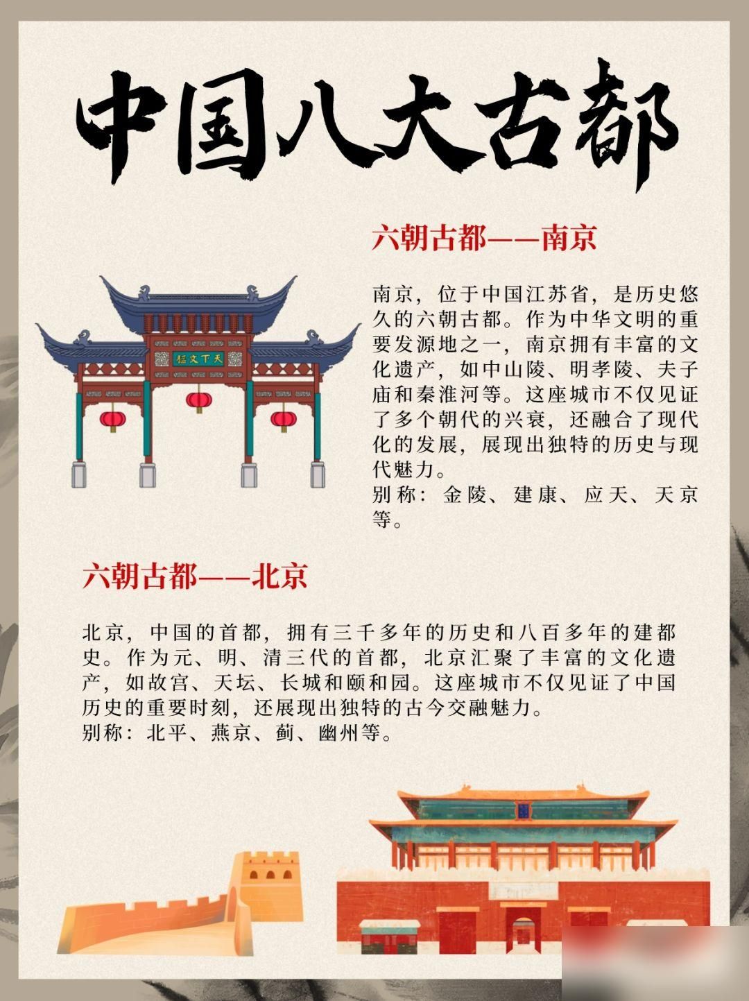 今天思思带大家一起穿越时空,领略中国八大古都的辉煌与魅力。每一座古都都有其独特的历史故事和文化底蕴,让我们一起来探索吧!