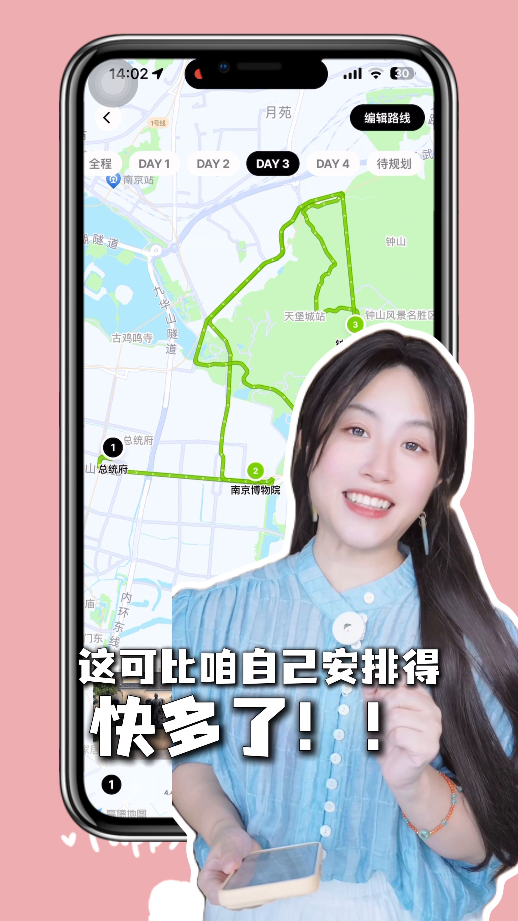 2. 它功能强大,能导入网上的路线,并根据添加的景点自动设置每日旅游规划及攻略指南、地图导航、景点打卡、交通时间估算、微信备注、拍照参考姿势、找旅游搭子、行程分享等,是一款集多方面功能于一体的旅游规划 app,非常省事,我安利给很多朋友都说好用。