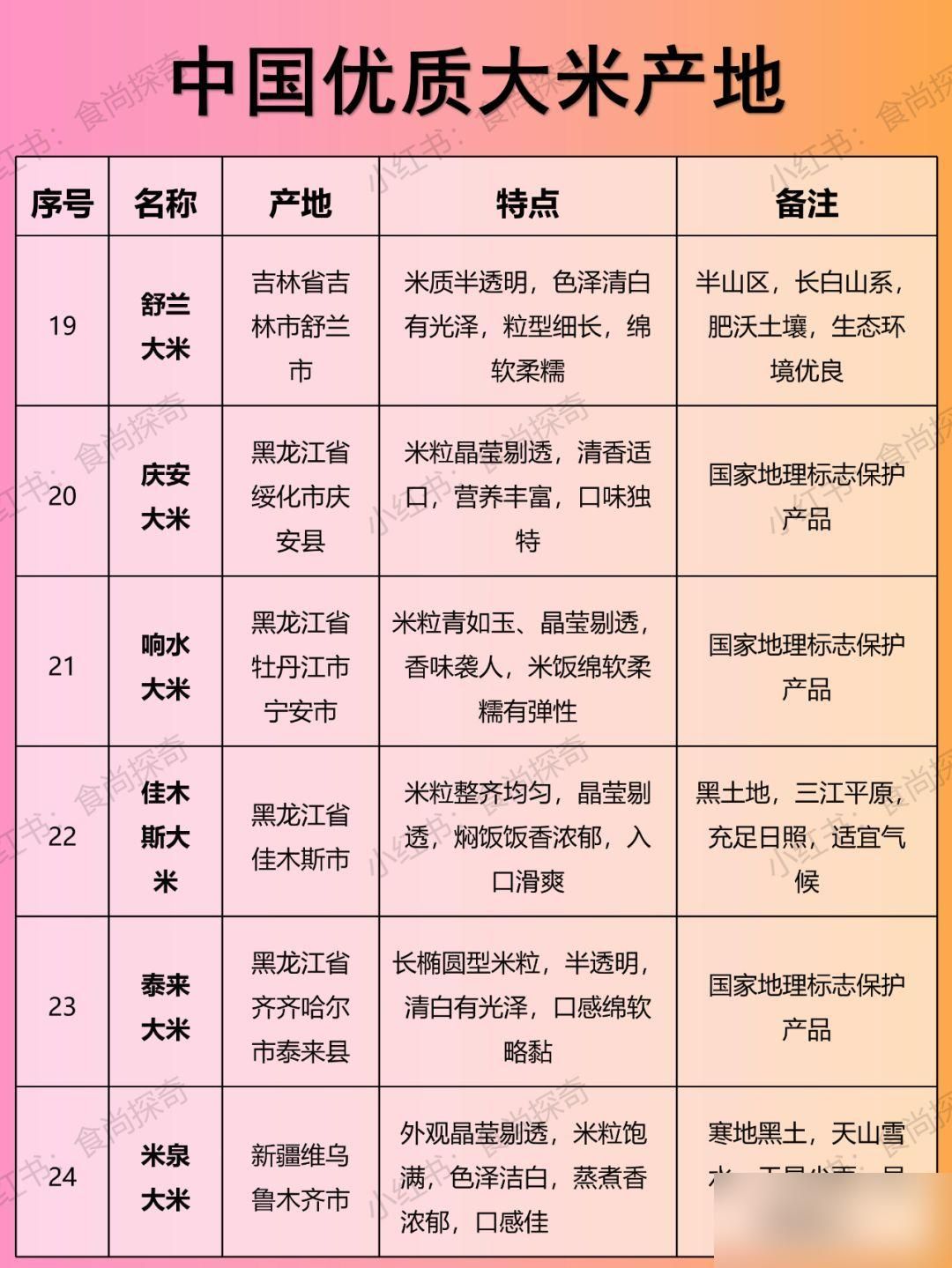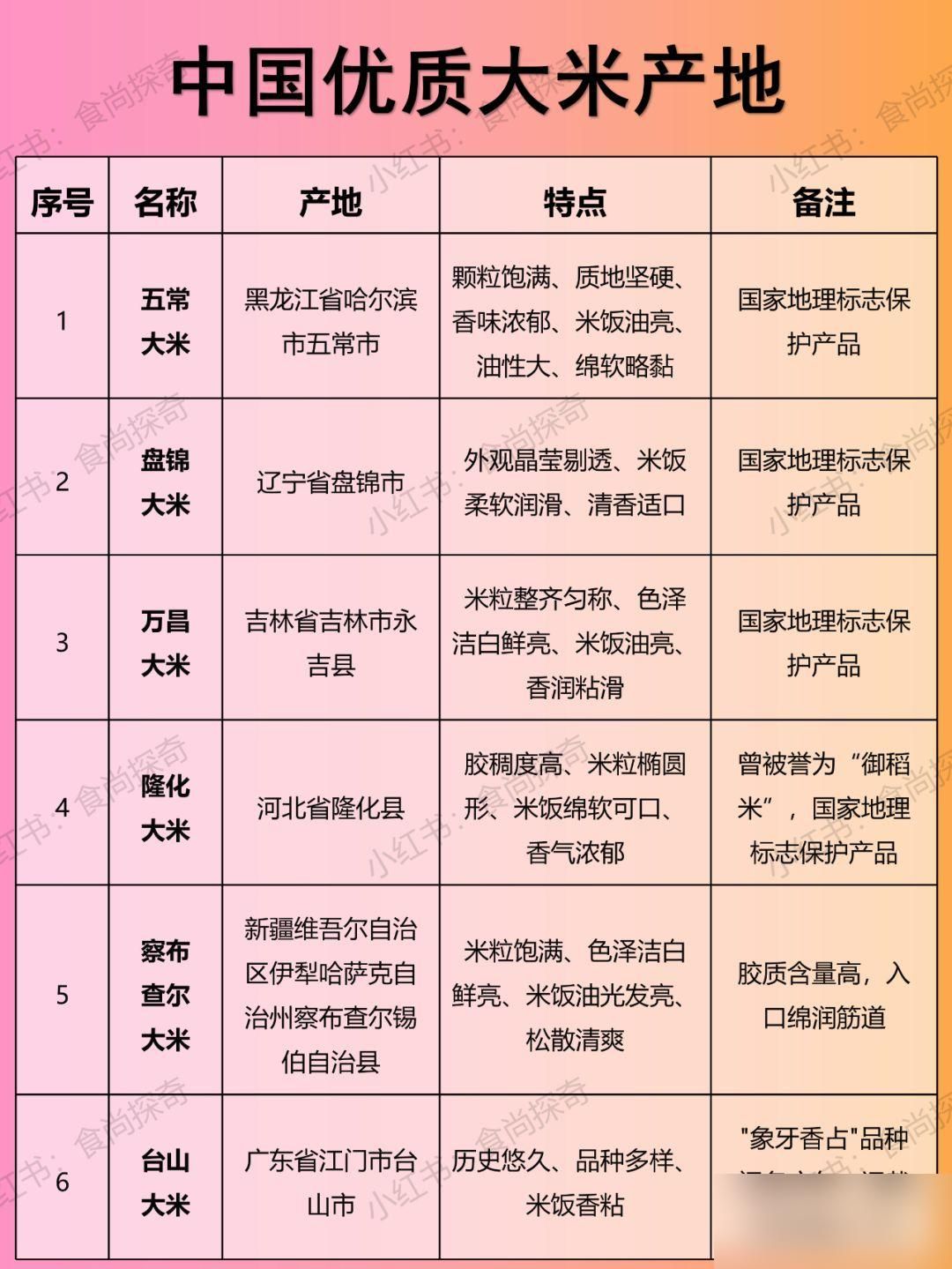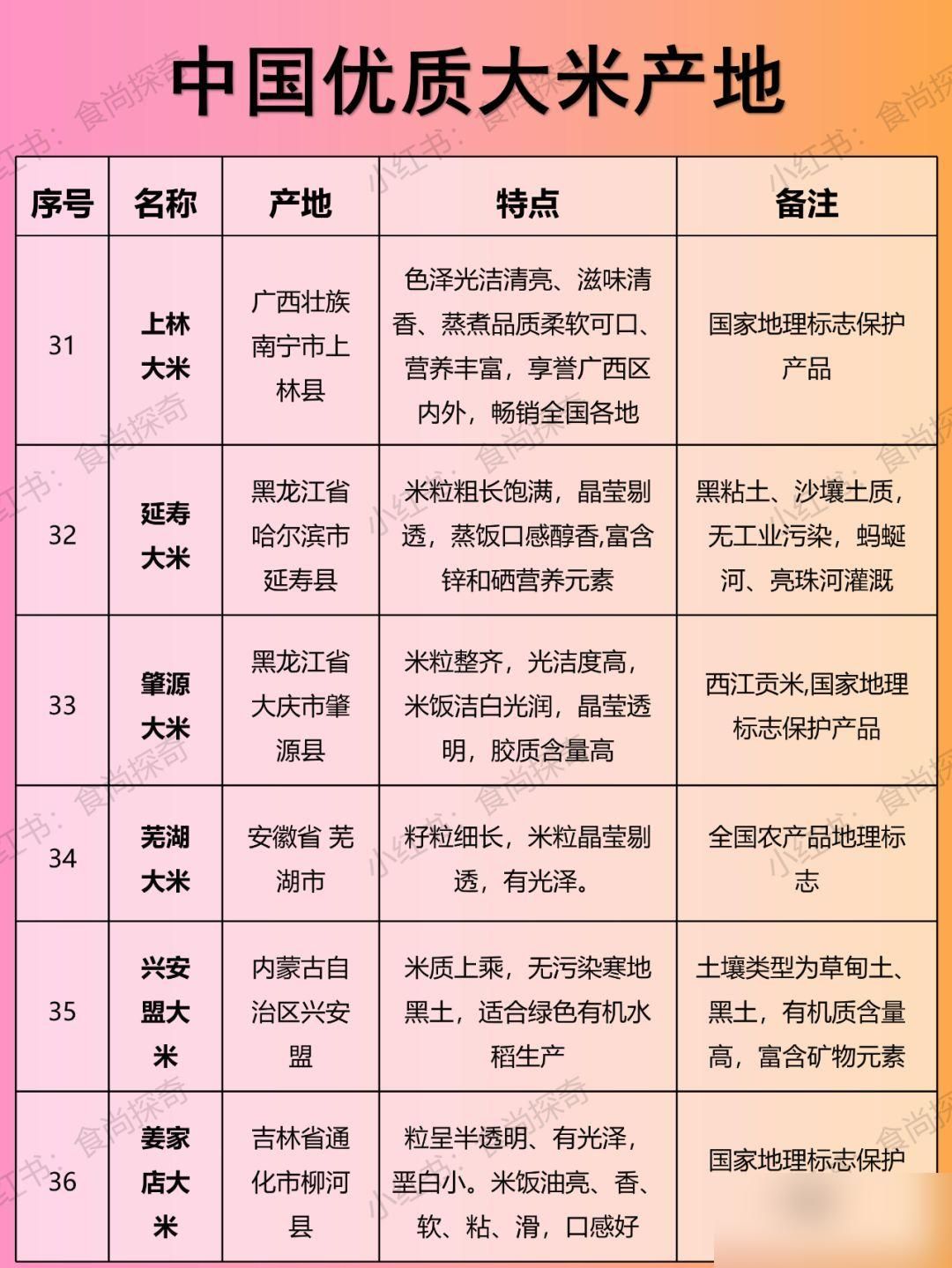 特点:颗粒饱满,质地坚硬,香味浓郁,吃起来香甜,米饭绵软略黏,芳香爽口。