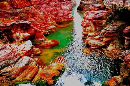红石峡是云台山的标志性景点之一,以其红色的岩石和陡峭的峡谷著称。这里山清水秀,景色壮美。沿着峡谷步道前行,游客可以欣赏到壮观的瀑布和奇特的岩石。