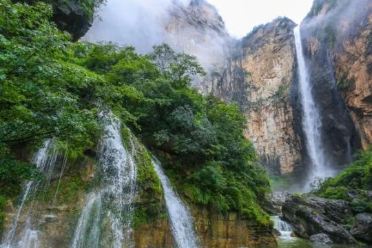 3. 云台天瀑:这是一处壮观的瀑布景观,瀑布从高处倾泻而下,形成一道壮观的景象。在雨季,瀑布的水量更为充沛,给人一种震撼的感觉。