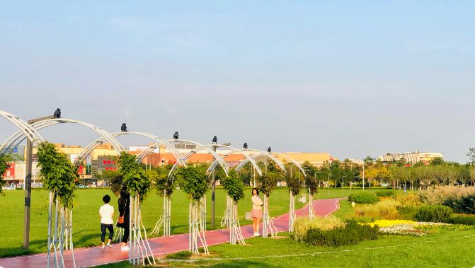 日赏花来夜观灯,流光溢彩庆十一。倘若你还在为今年“十一”到底去哪而纠结的话,不妨去这里领略一下大自然的魅力吧!白天,你可以在这里欣赏到面积达800平方米,由20余种植物组成的花境;傍晚,可以在东湖广场打卡麦穗造型灯光及锦鲤灯球,在五彩射灯拱门和流星雨灯带下的休憩区感受夜幕下公园的瑰丽美景。