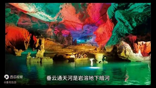 ·垂云通天河是岩溶地下暗河形成的典型喀斯特地貌。在这里您可以乘坐小船在洞中漂游,感受到地下河的神秘和壮观。