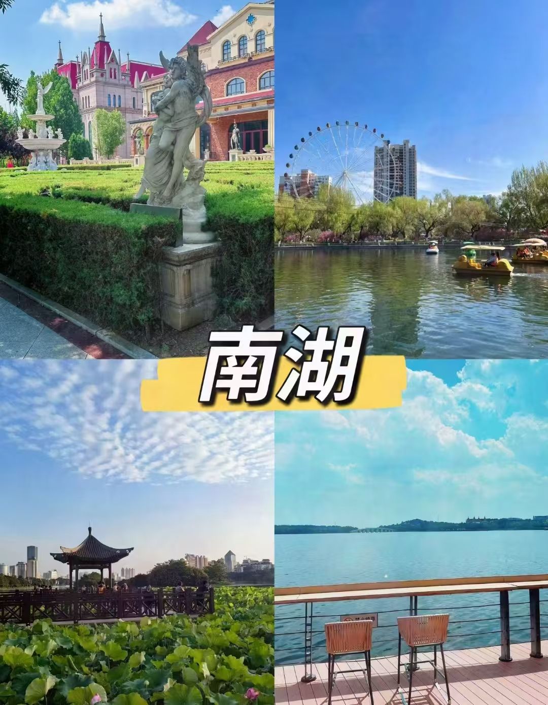 南湖公园:入园免费,建议租用电动车游览!每小时50元,由于地势起伏较大,骑行