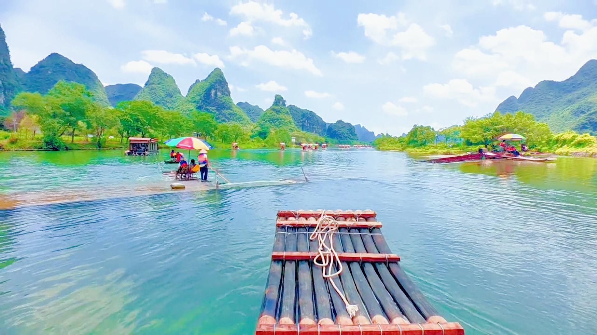 遇龙河全长43.5公里,两岸连绵起伏的山峰。清秀美丽,形态各异,最美的阳朔有最美的遇龙河。坐一叶竹筏,享受一路的山水美景。看着两岸融入到心里的风景,小河青山村落稻田。坐在竹筏上畅游其中,遇见最美的山水,此时满眼都是诗意。