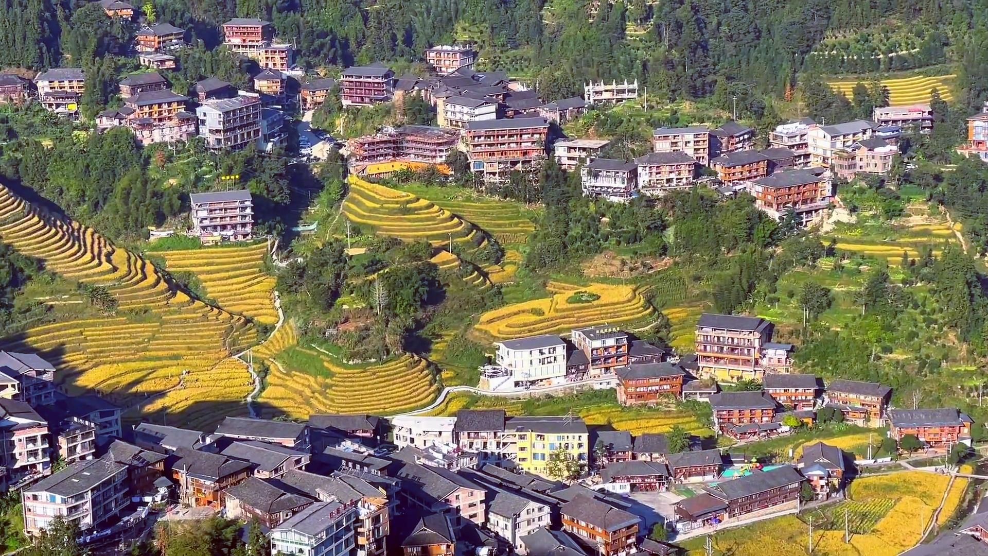 距离桂林市区大约80公里,这里有中国最美的梯田,挂在天边的美景。走在这里,给人一种云端上的诗与远方。梯田分布在海拔300至1100米之间,从山脚盘绕到山顶,梯田的曲线美,一条条或平行或交叉,层层叠叠高低错落如链似带。如果说,5月的龙脊梯田,翠绿的梯田没有惊艳到您。那10月的金秋,稻谷成熟,梯田呈现出金黄色的一片。这时大自然对辛勤劳作的人们的回馈,也把梯田最美的一面展露了出来。