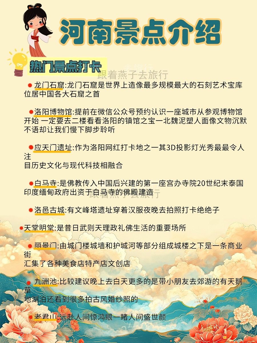 洛阳景点:龙门石窟、应天门、天堂明堂、洛阳博物馆、白马寺、洛邑古城