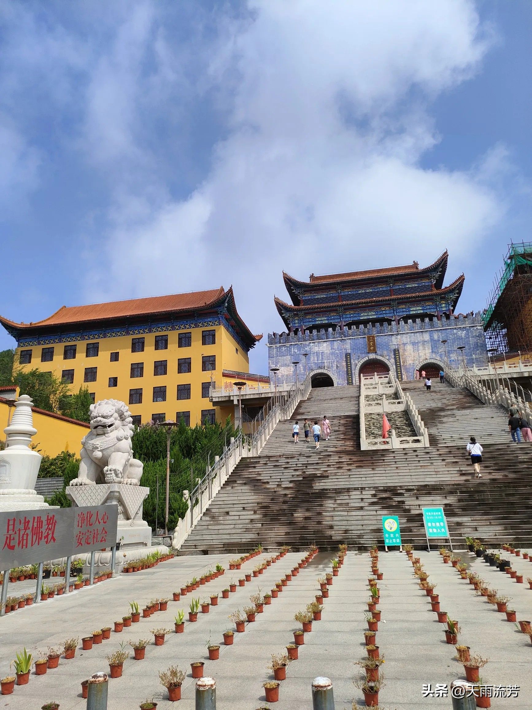 寺院里苍松翠柏,绿树成荫,殿堂红砖绿瓦,庄严肃静。这里一共16个景点,慢慢逛,足以逛一天。如果想住下的话还可以食宿免费。既有茶道,又有书房。与其他的寺庙,很是不同。我最感兴趣的是那十三层宝塔。里面安静肃穆,每层都有不同的佛像。我们一一跪拜,祈求福报,心中既平静又莫名的欢喜。