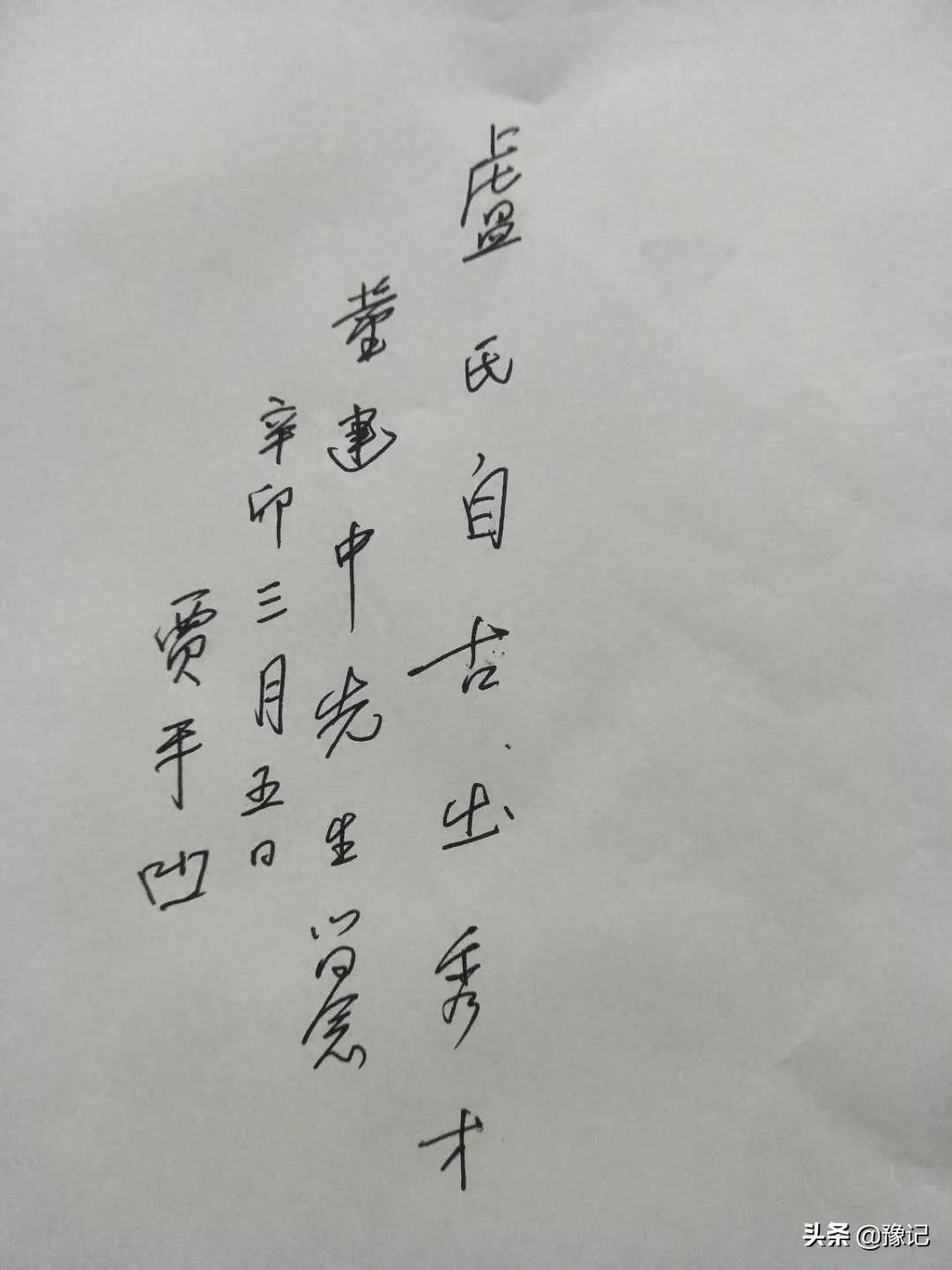 贾平凹说能中,往哪里写。董建中拿出个日记本,老贾就用碳素笔在扉页上写了,卢氏自古出秀才。后面还有一句话,老贾没有敢写。旧社会民国时代,在晋陕豫三角地带,流行一句民间谚语:卢氏自古出秀才,洛宁民国出盗铁。盗铁就是刀客,土匪。